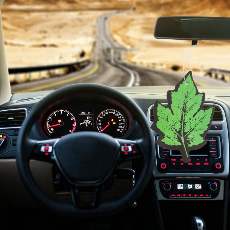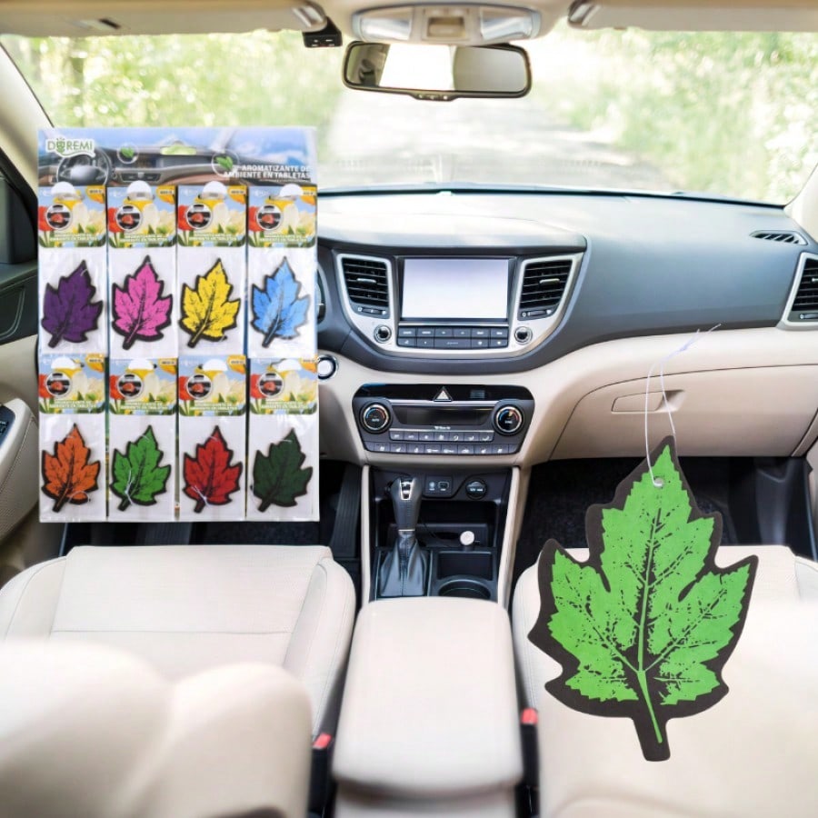 Lámina aromática en forma de hoja, diseño único, emite fragancia natural duradera, refresca y elimina olores, ideal para coche y armario.