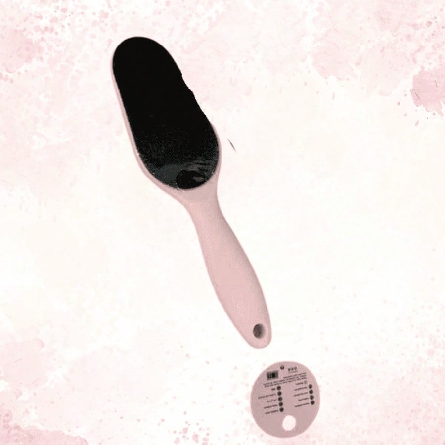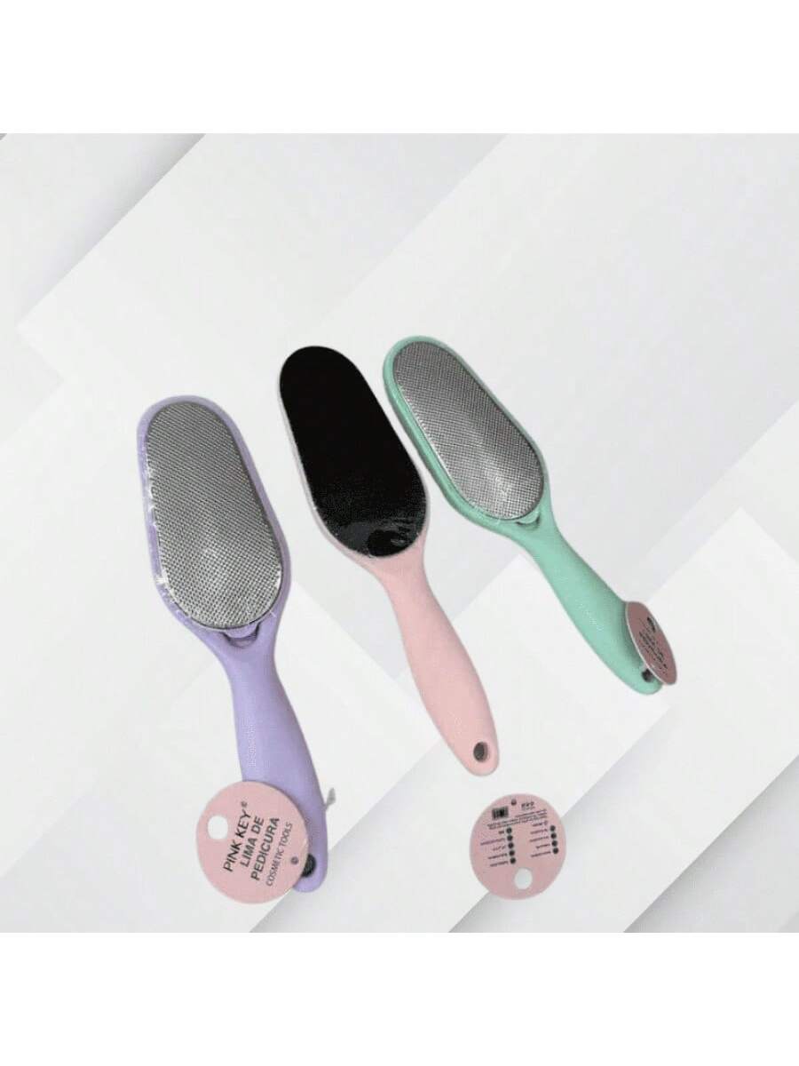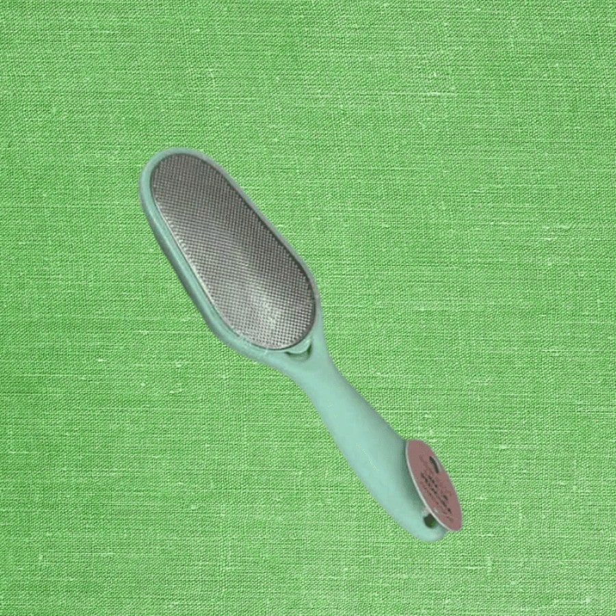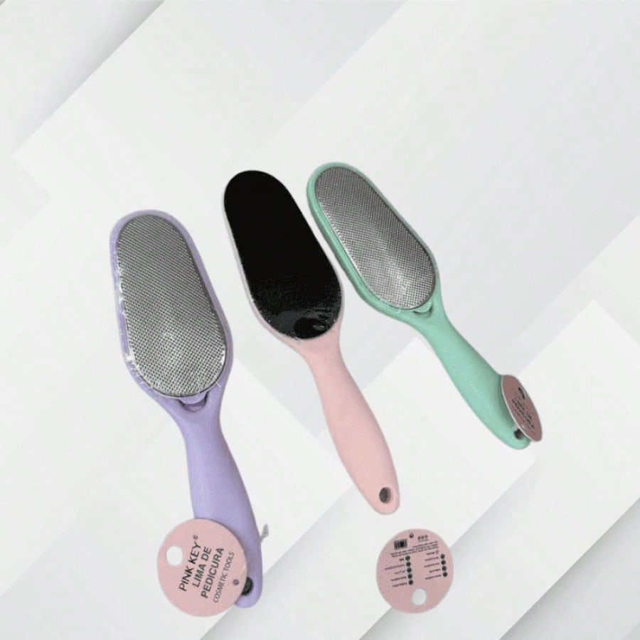 Herramienta ergonómica para pedicura casera. Diseño fácil de usar que permite alcanzar todas las áreas del pie eficientemente, esencial para el cuidado podal regular.