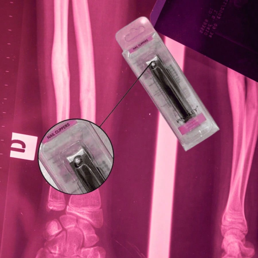 Cortaúñas con receptor para las uñas cortadas. Diseño práctico que evita que los recortes se esparzan, manteniendo el área de uso limpia y ordenada.