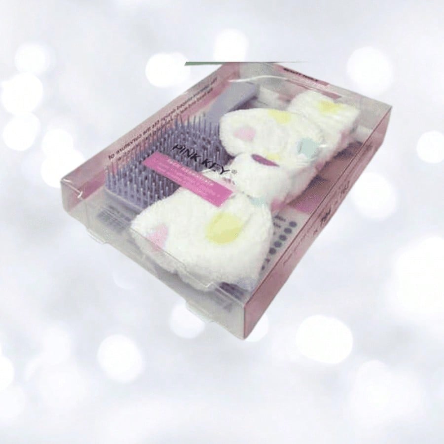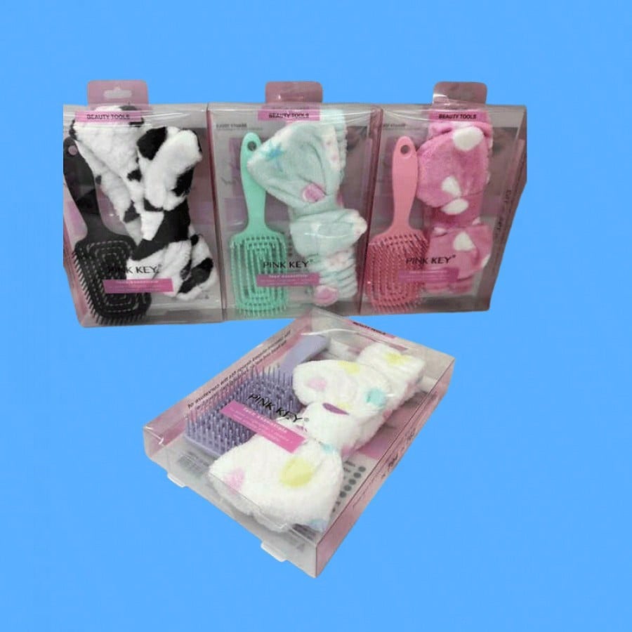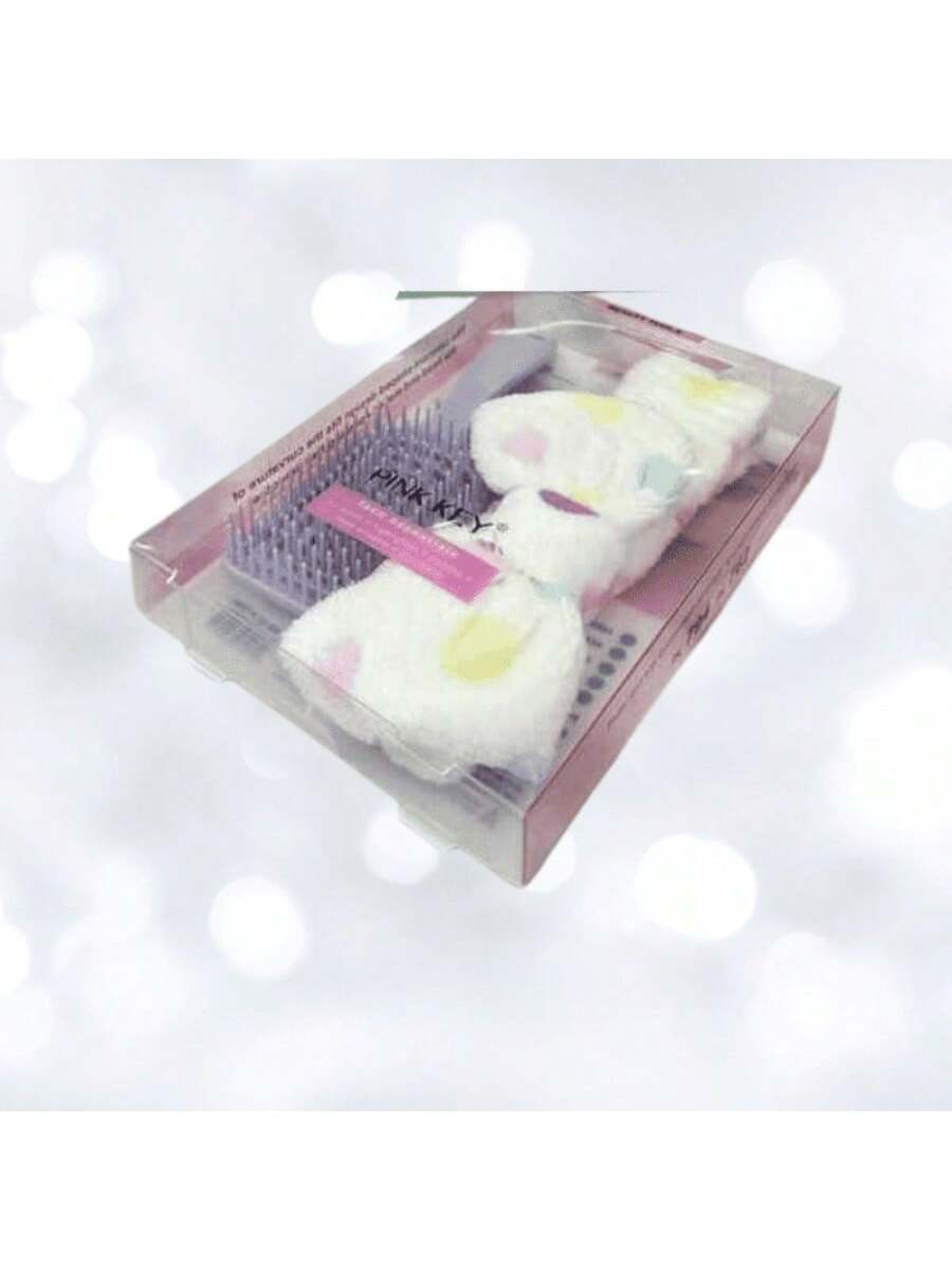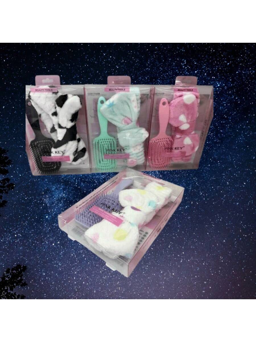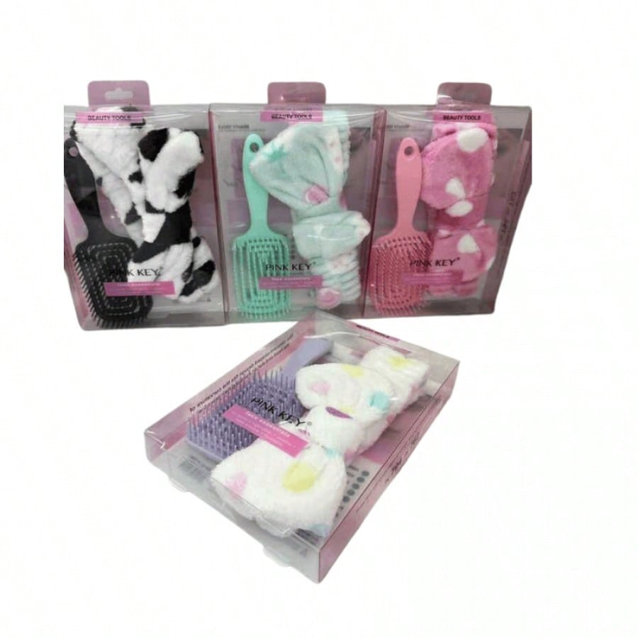 Kit que incluye diadema y cepillo para el cuidado capilar. Combinación práctica que facilita el peinado mientras mantiene el cabello controlado durante rutinas de belleza.