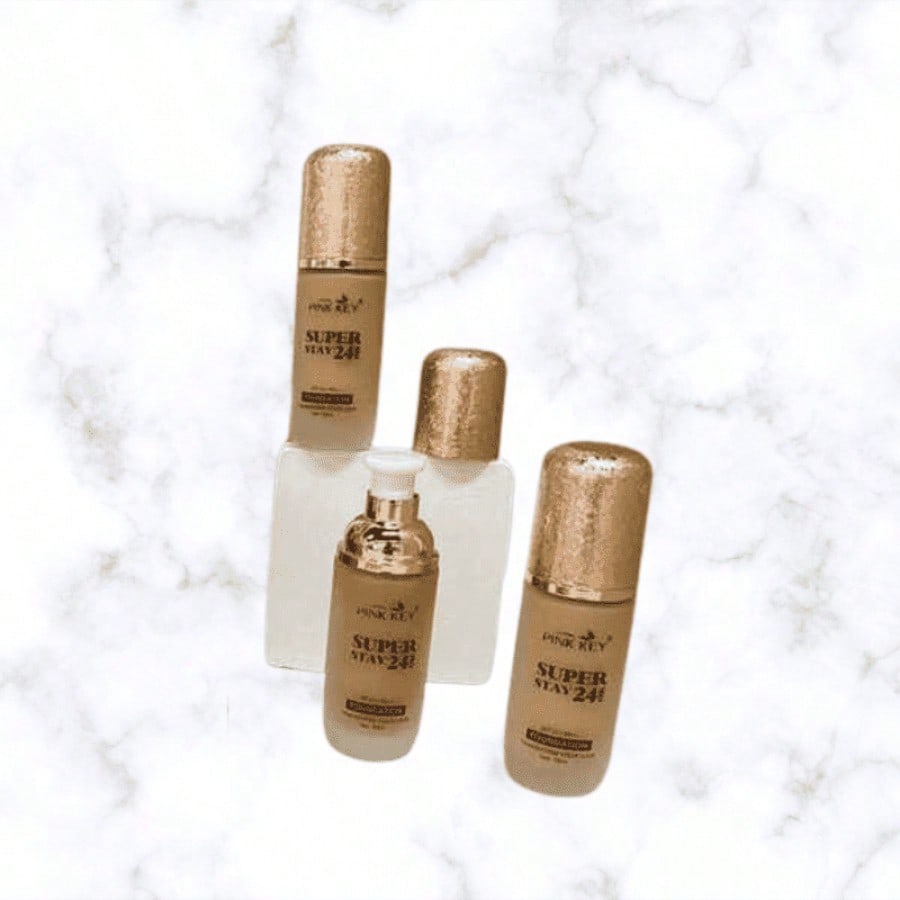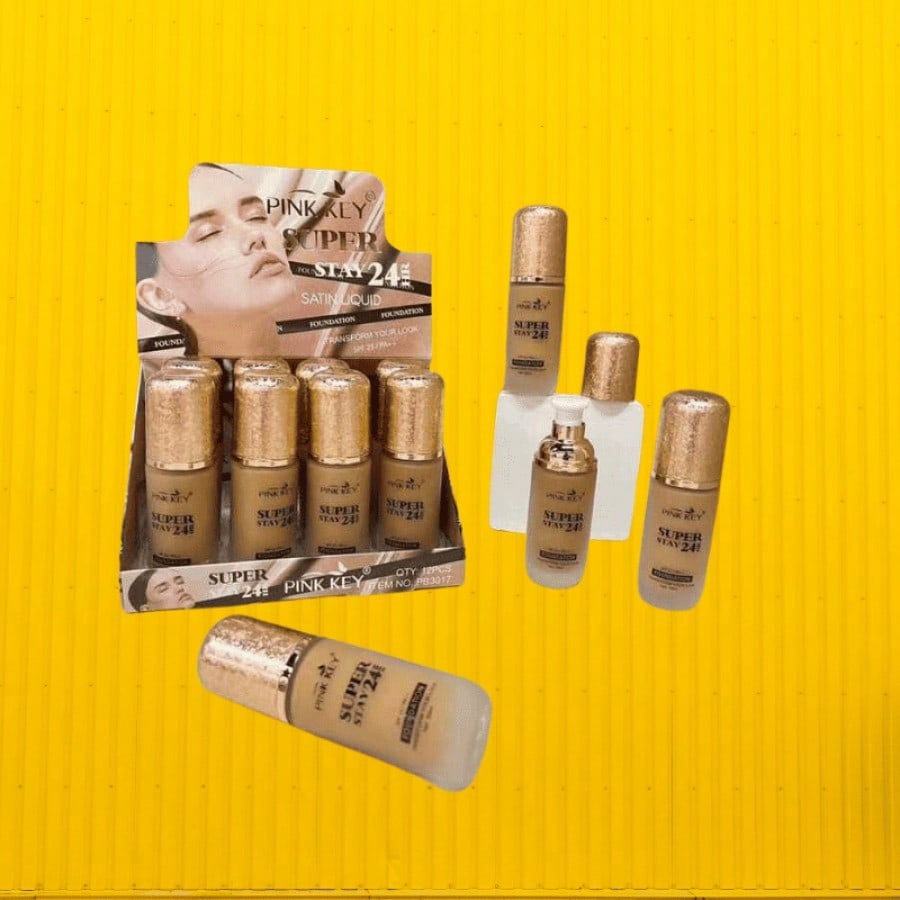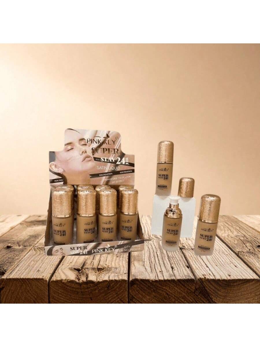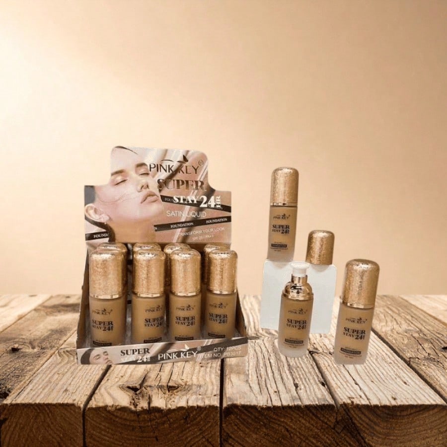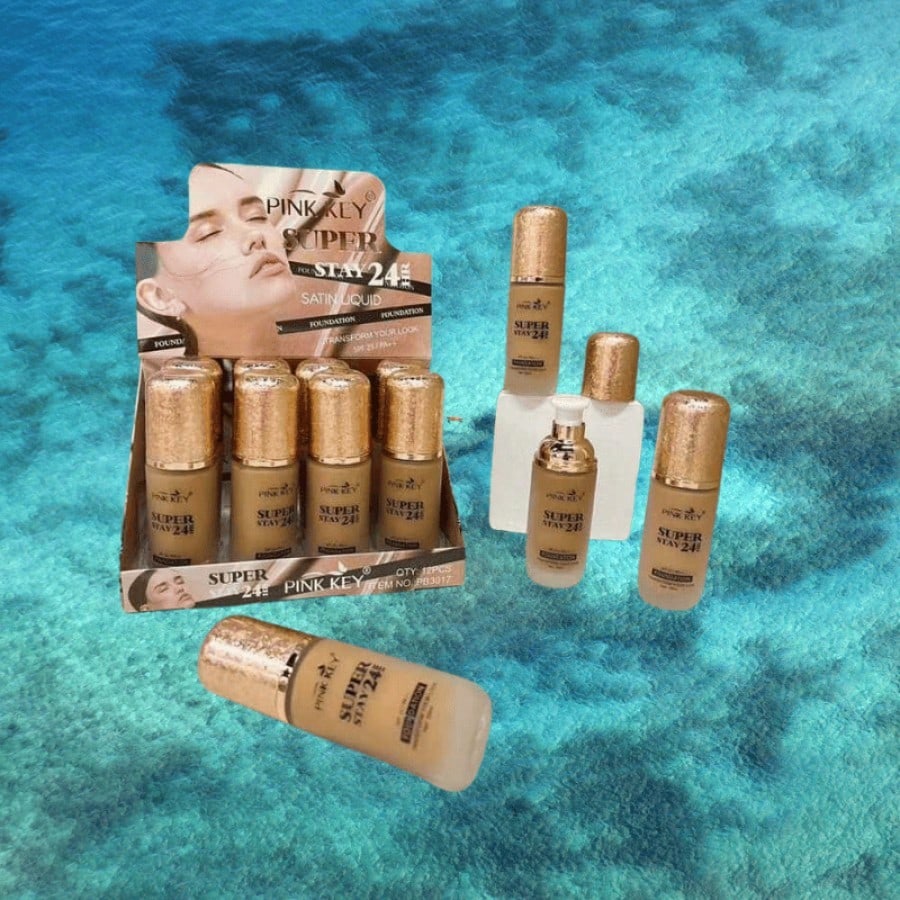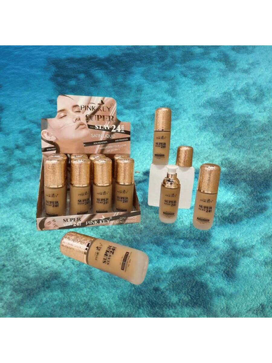 Base líquida de larga duración. Resistente al agua y a la transferencia, mantiene el maquillaje intacto durante horas sin necesidad de retoques frecuentes.