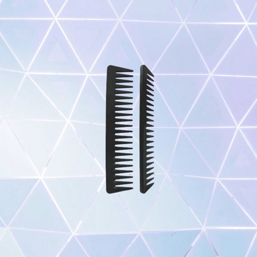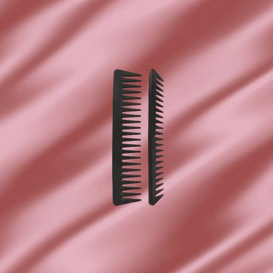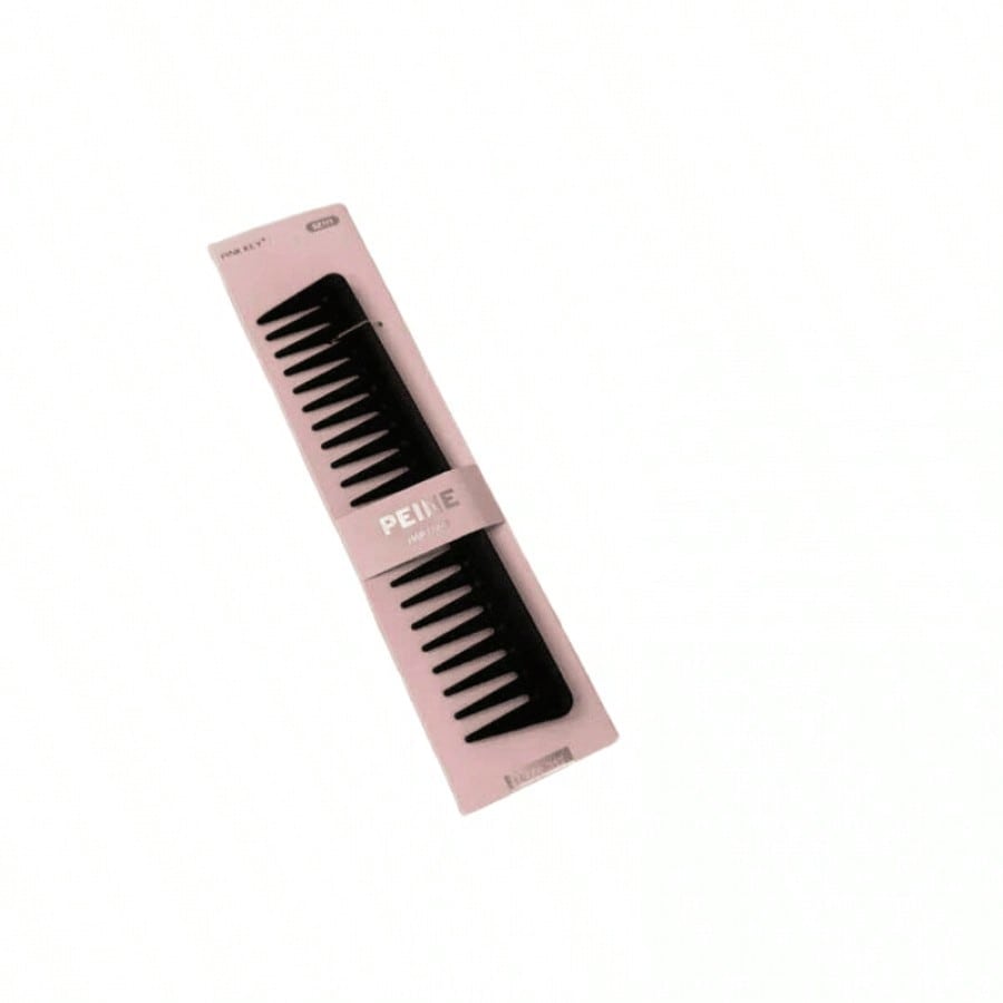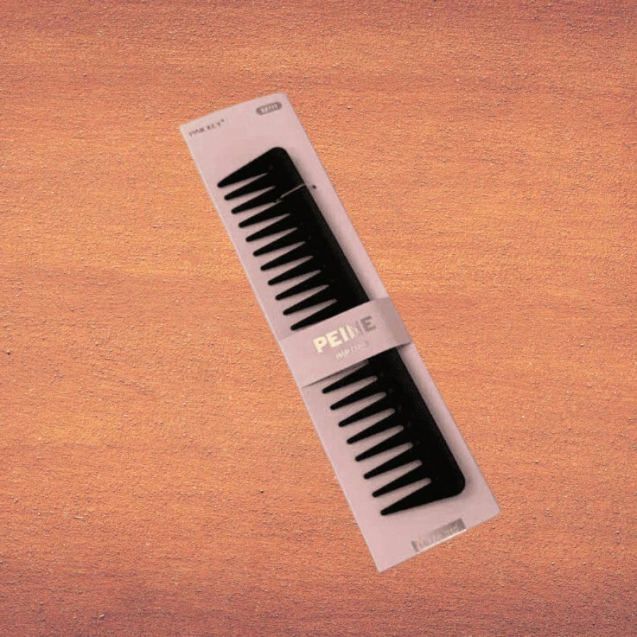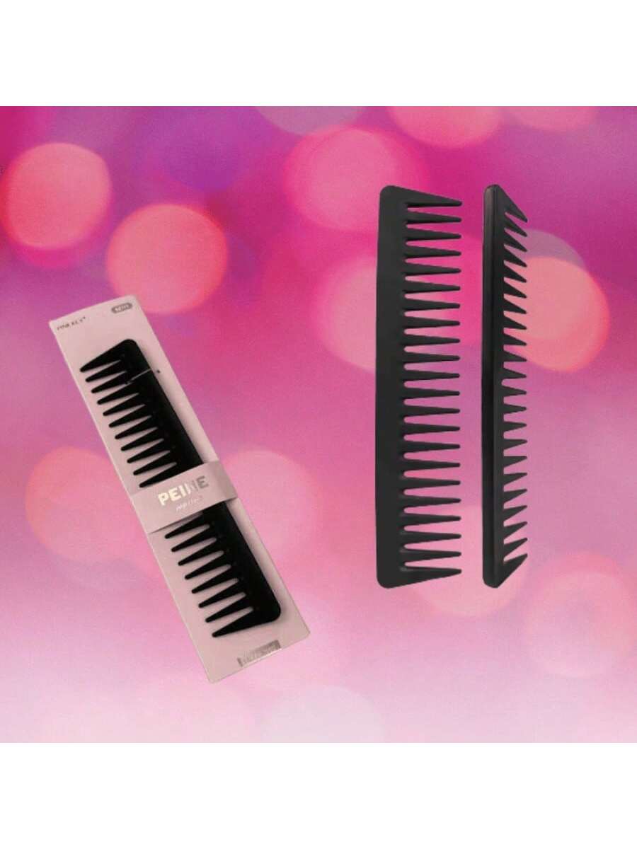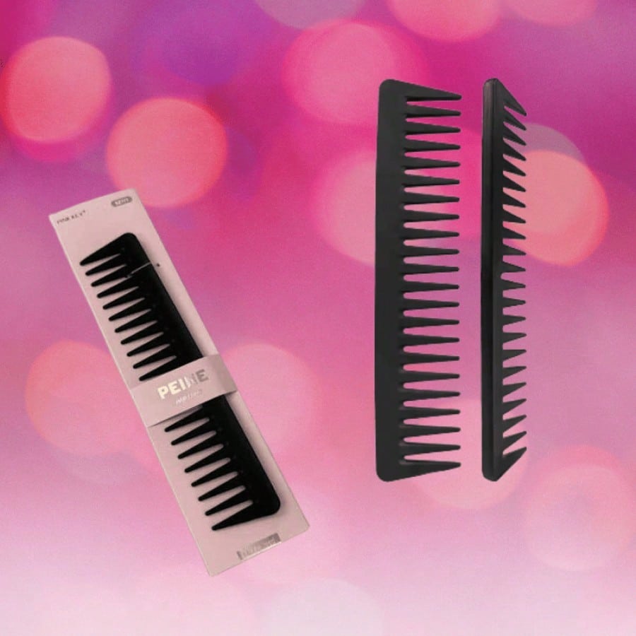 Peine con dientes de diferentes separaciones. Diseño versátil que se adapta a diversos tipos y texturas de cabello, facilitando el desenredo y el styling.