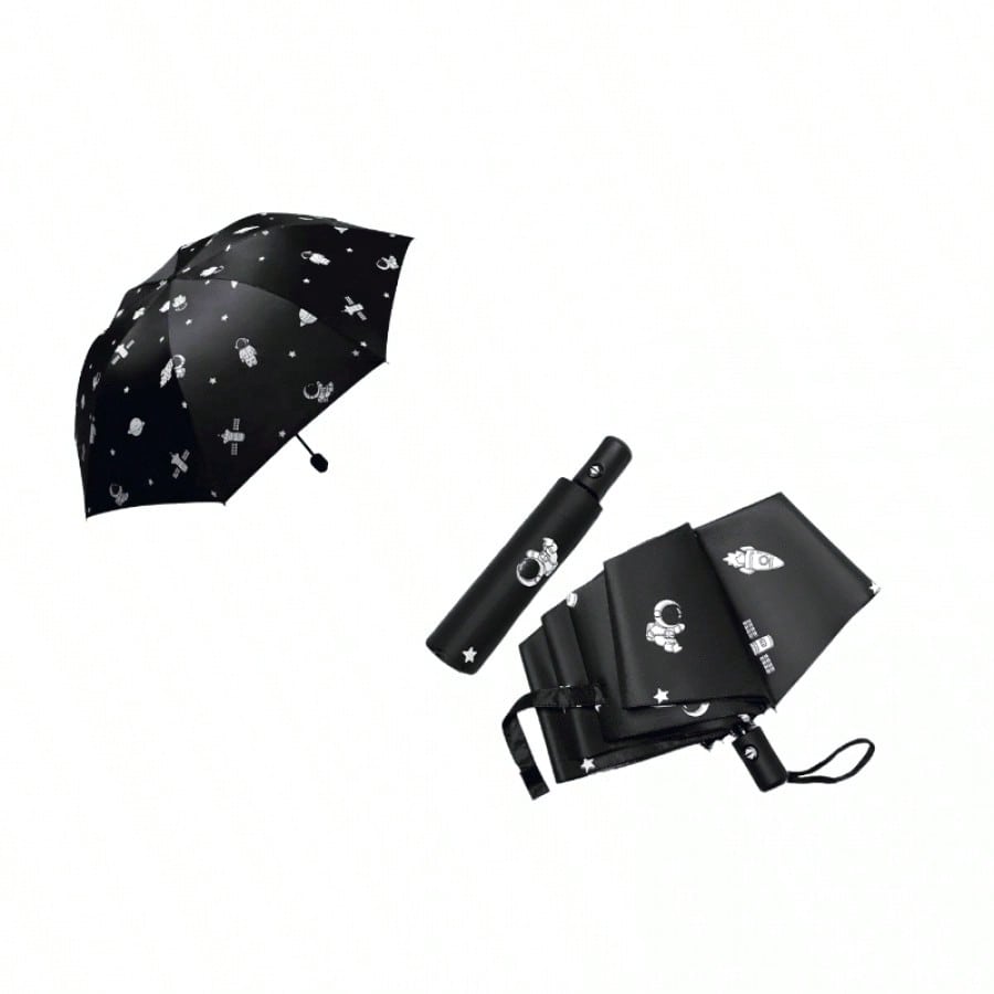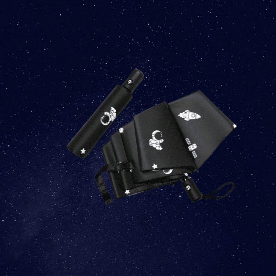 Este paraguas automático negro con motivo de astronauta combina un diseño divertido con funcionalidad. Su mecanismo de apertura automática y su estructura robusta lo hacen fácil de usar, ideal para niños y adultos que buscan un estilo original.
