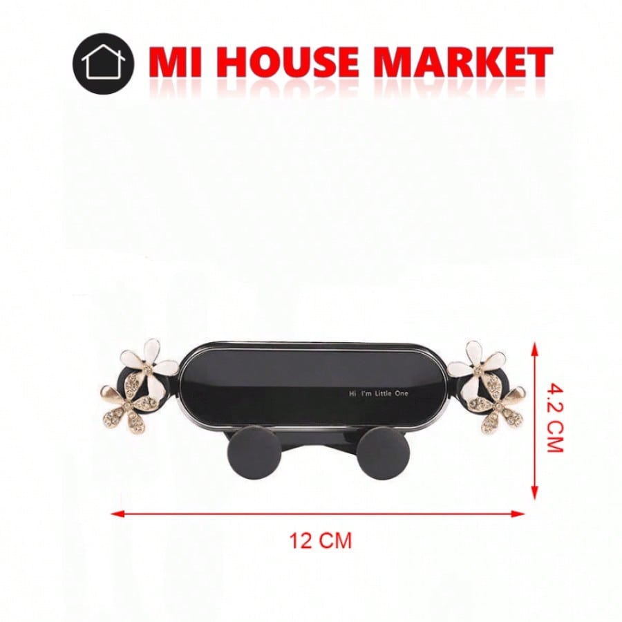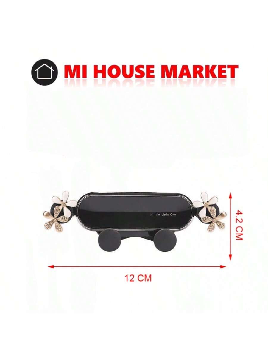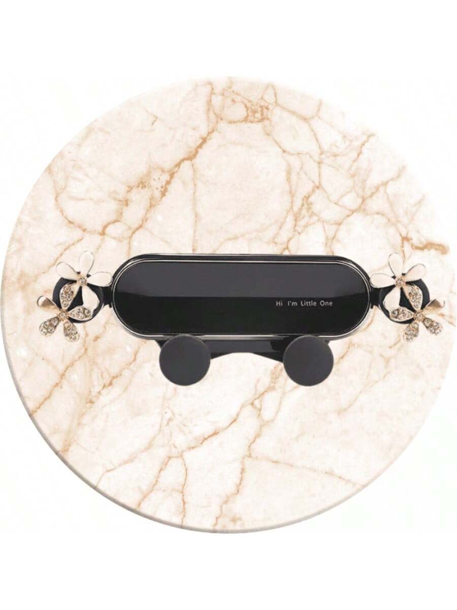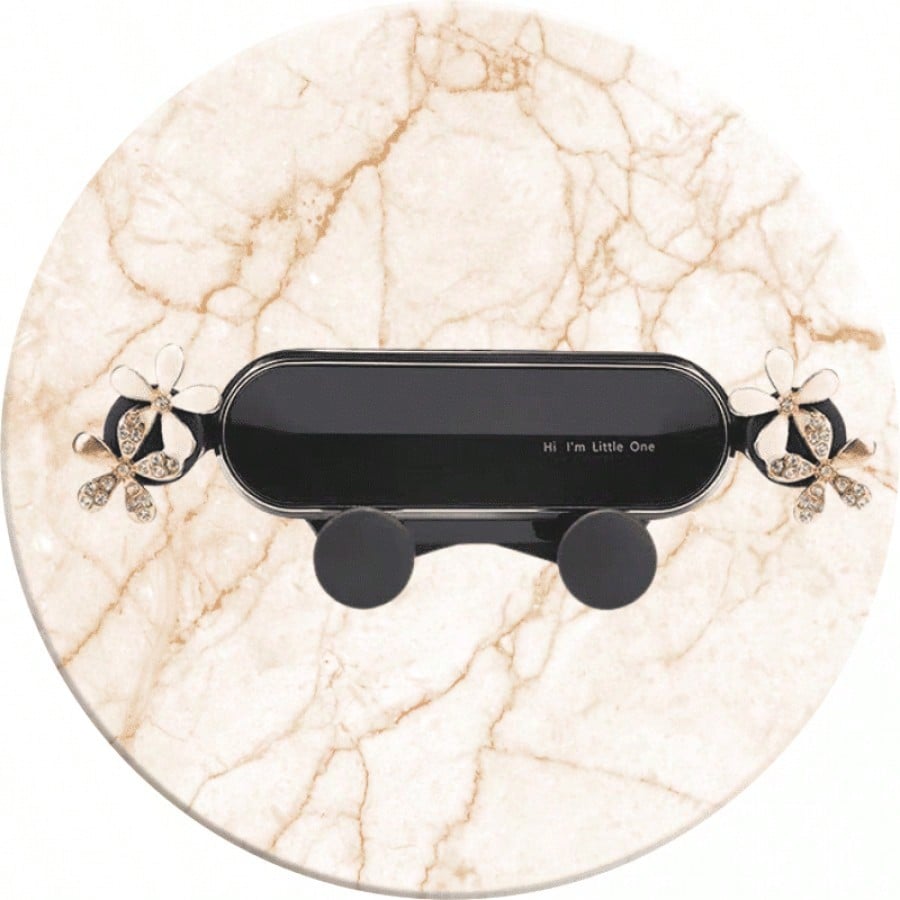 Soporte para coche en negro con un discreto estampado floral. Diseñado para sostener tu teléfono de forma estable en el salpicadero o la ventilación, permitiéndote usar aplicaciones de navegación de manera más segura y con un toque de estilo.
