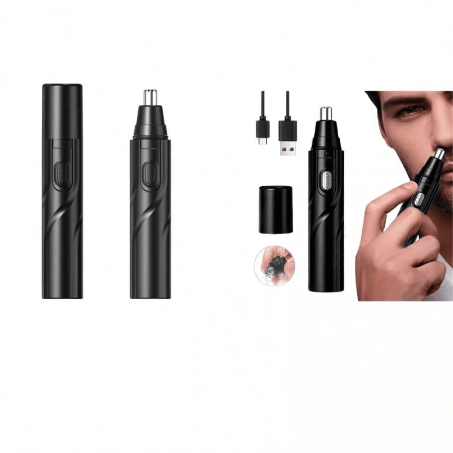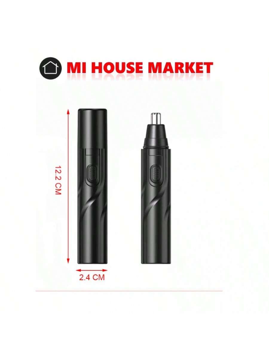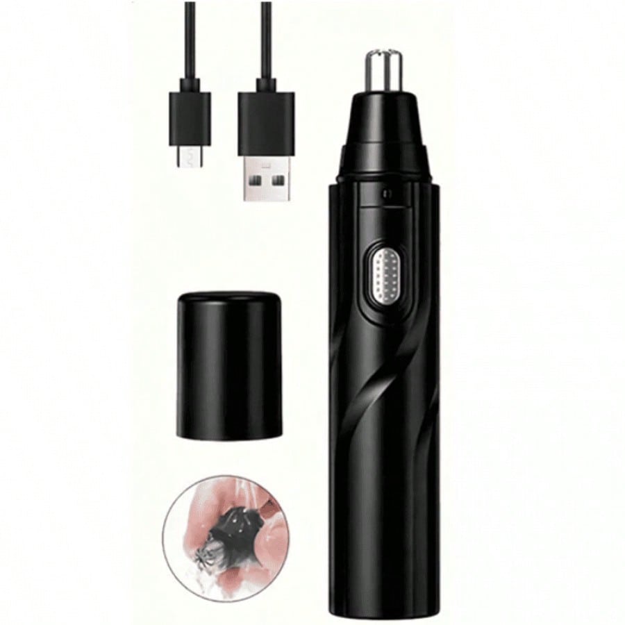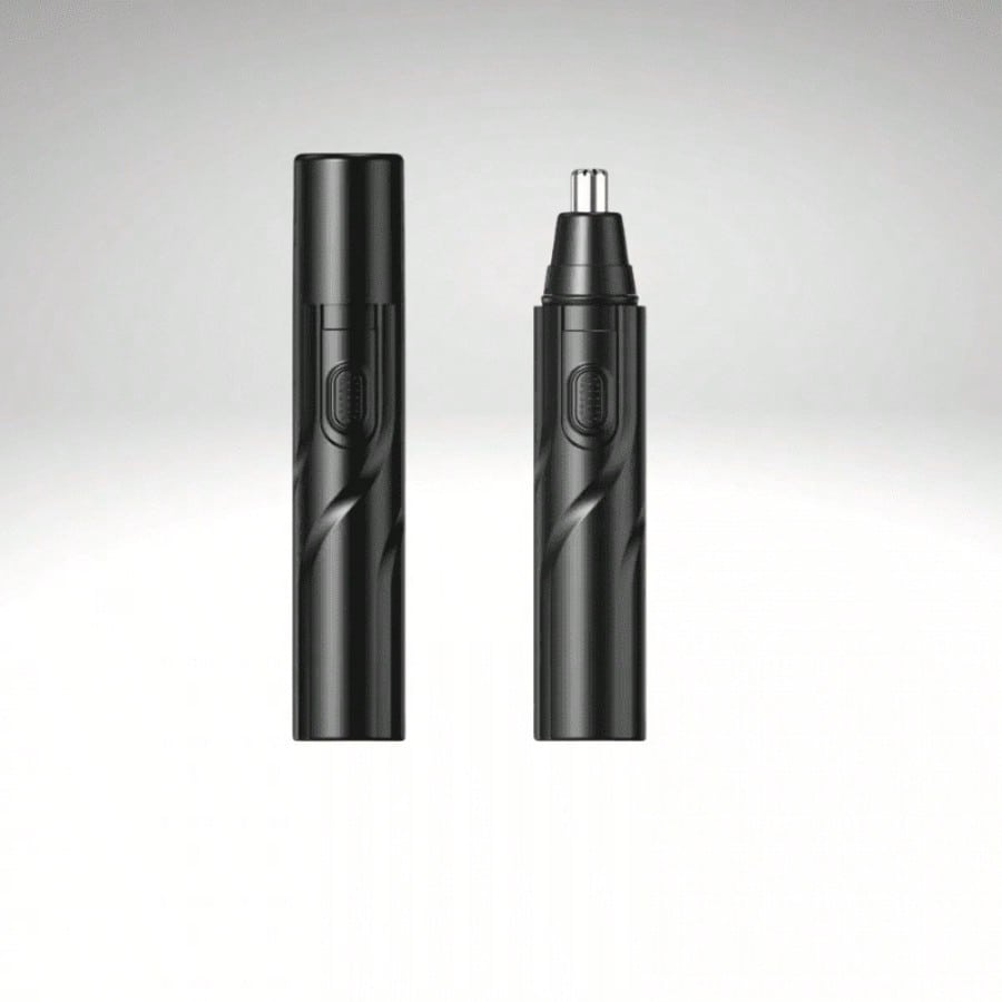 Recortador de vello nasal a pilas, listo para usar inmediatamente. Su diseño negro y compacto lo hace fácil de manejar para un cuidado personal preciso y cómodo. Ideal para mantener un aspecto arreglado de forma rápida y segura en la zona de la nariz.