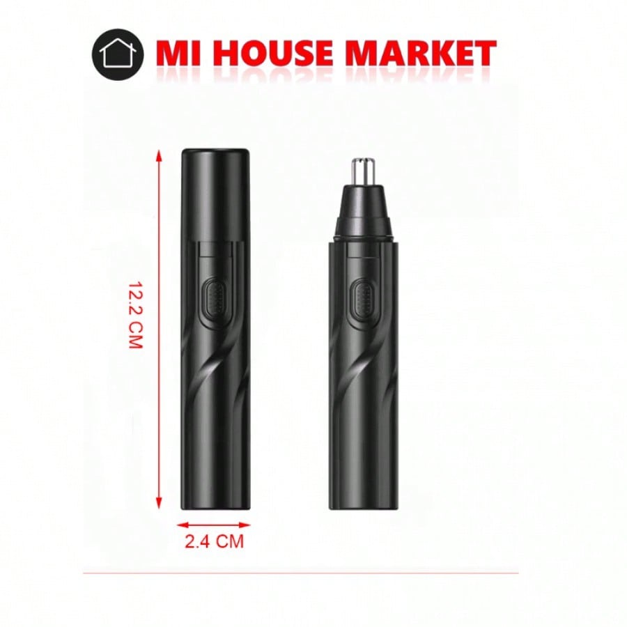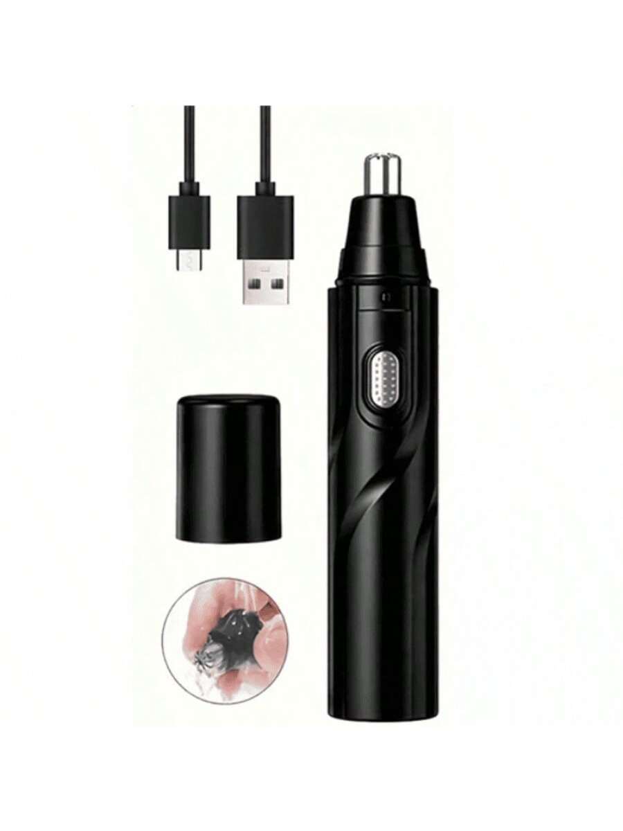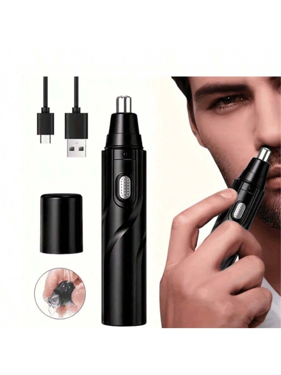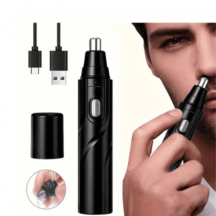 Recortador de vello nasal a pilas, listo para usar inmediatamente. Su diseño negro y compacto lo hace fácil de manejar para un cuidado personal preciso y cómodo. Ideal para mantener un aspecto arreglado de forma rápida y segura en la zona de la nariz.