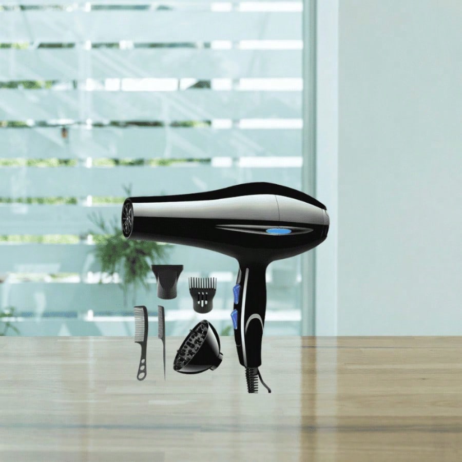 Secador de pelo con voltaje estadounidense 110V, que incluye una práctica luz azul y un completo paquete de regalo. Diseñado para un secado eficiente y cuidado del cabello, siendo una opción completa para tu rutina de belleza y cuidado personal diario.