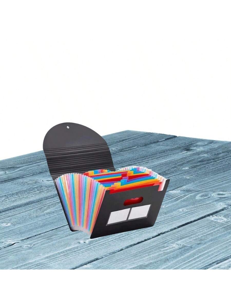 Organizador de documentos tipo acordeón - Negro con páginas interiores de colores del arcoíris [25 compartimentos]
