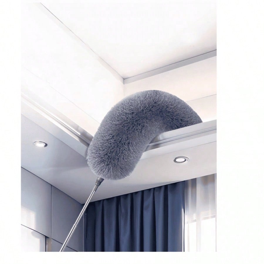 Plumero con un mango telescópico que se extiende hasta 2.8 metros, incluyendo un cabezal de repuesto. Perfecto para limpiar el polvo en lugares altos y de difícil acceso como ventiladores, estanterías altas o lámparas, de forma fácil y eficaz.