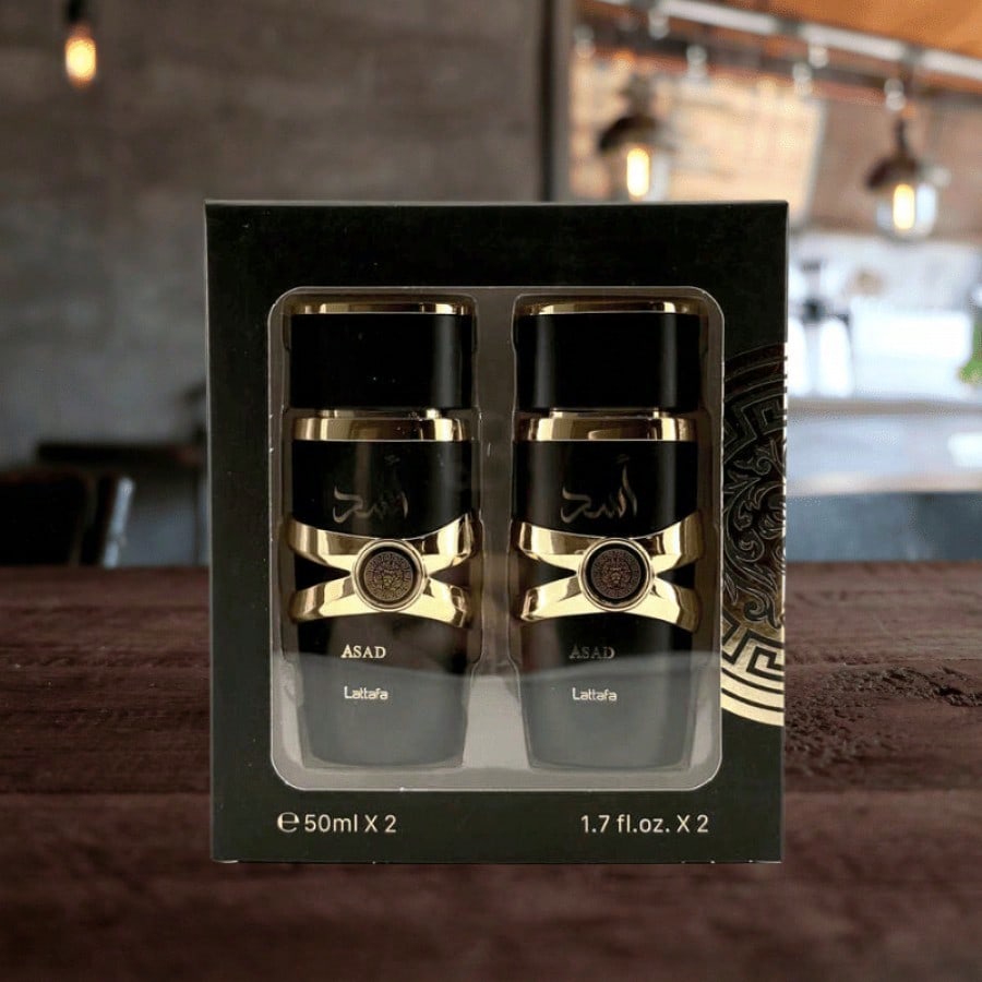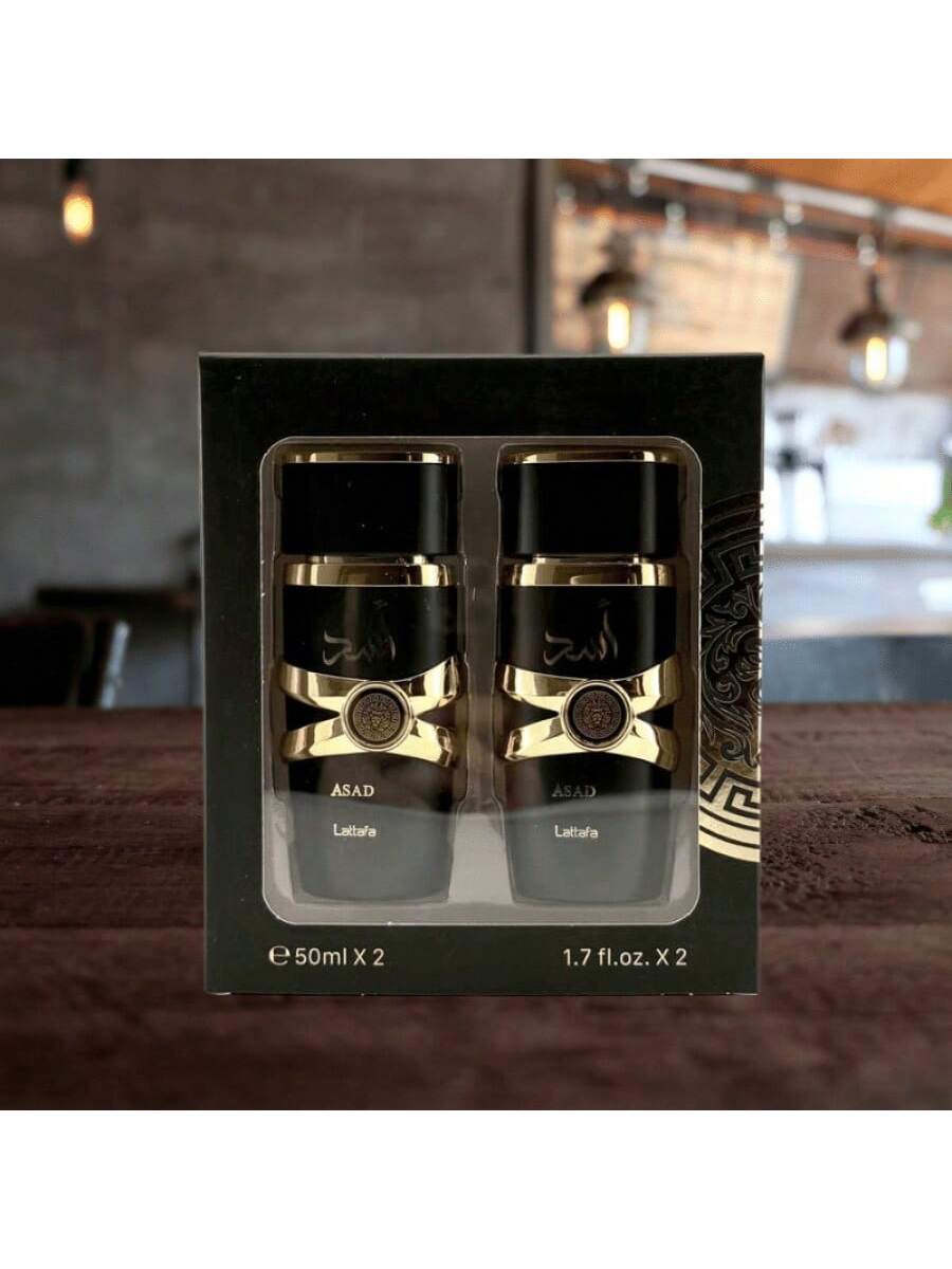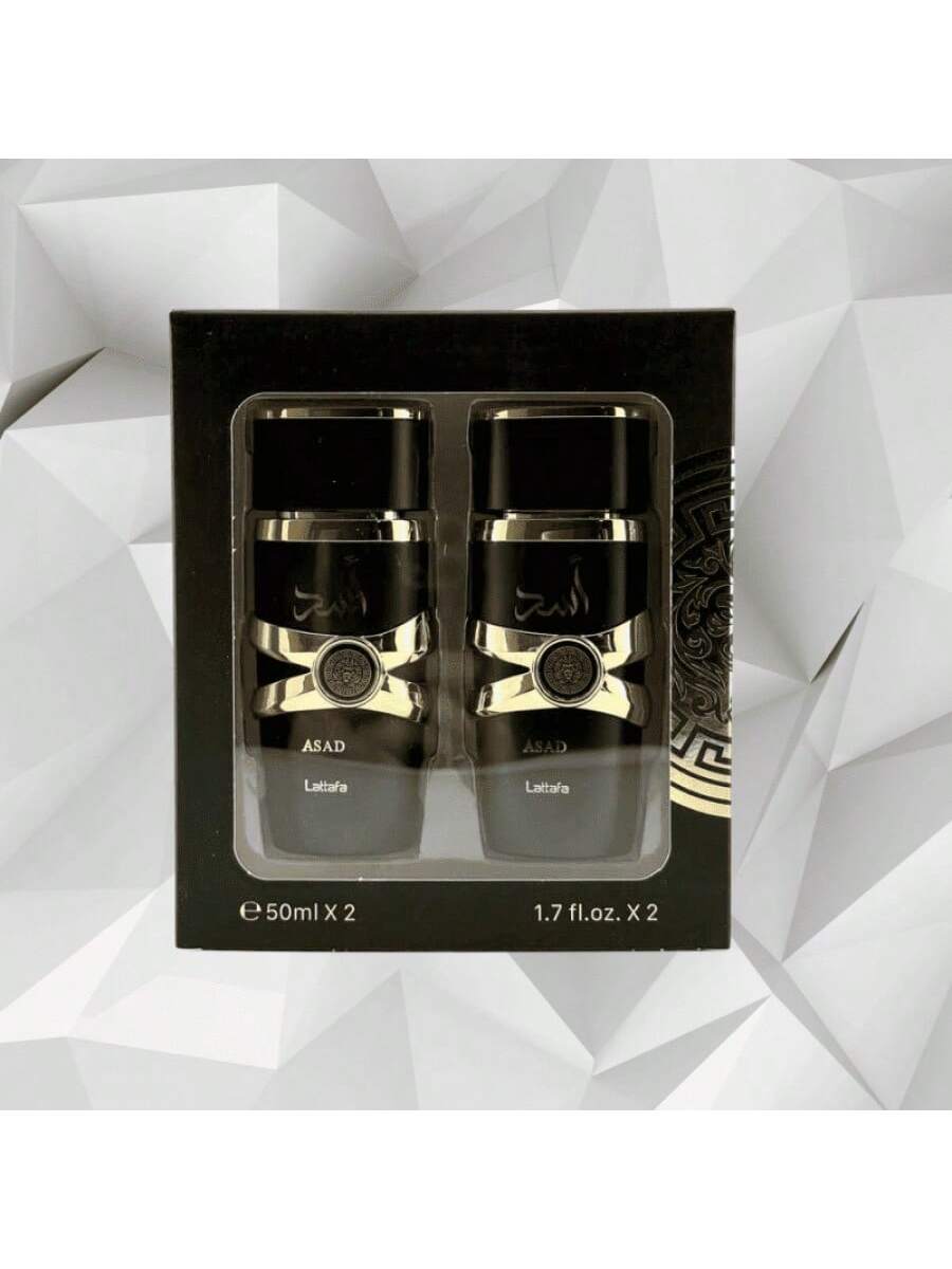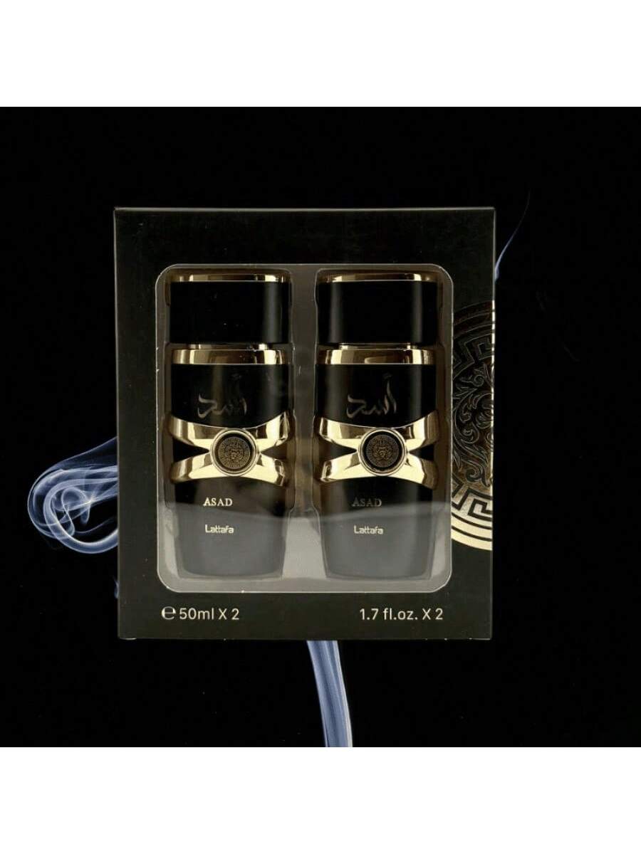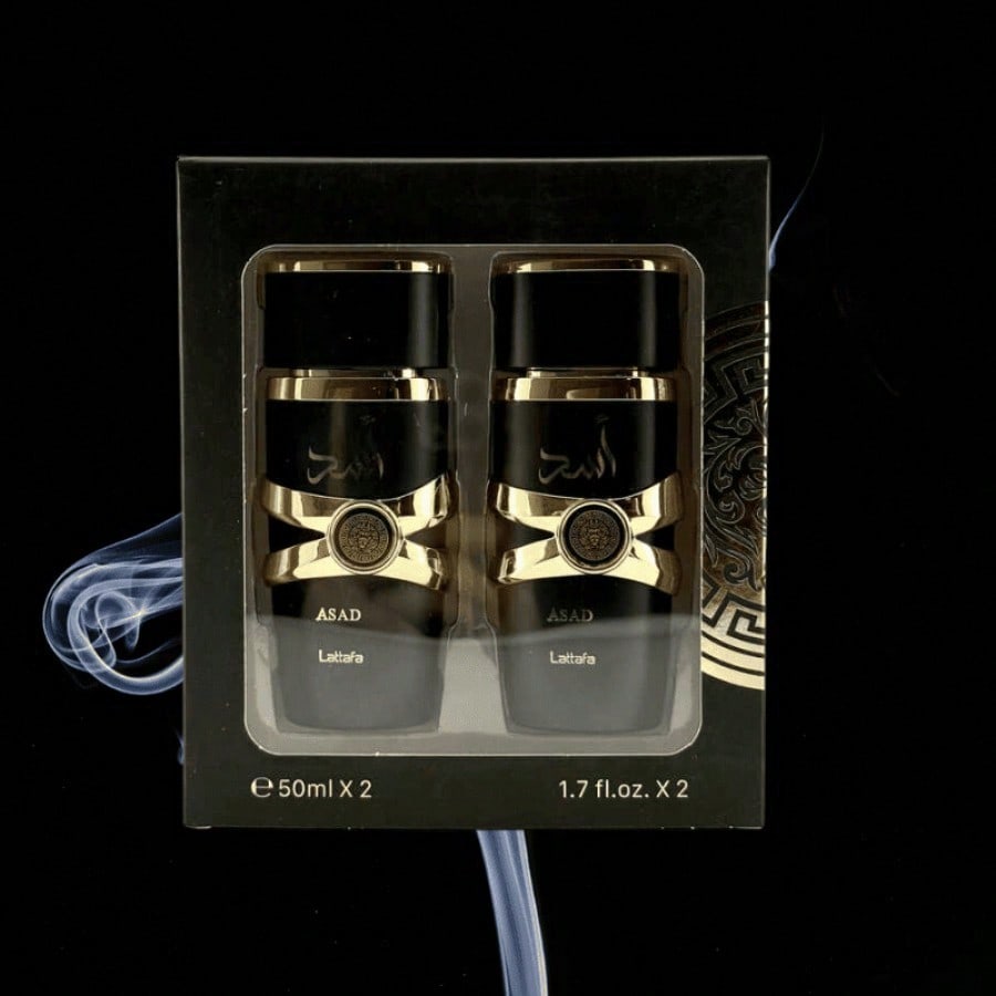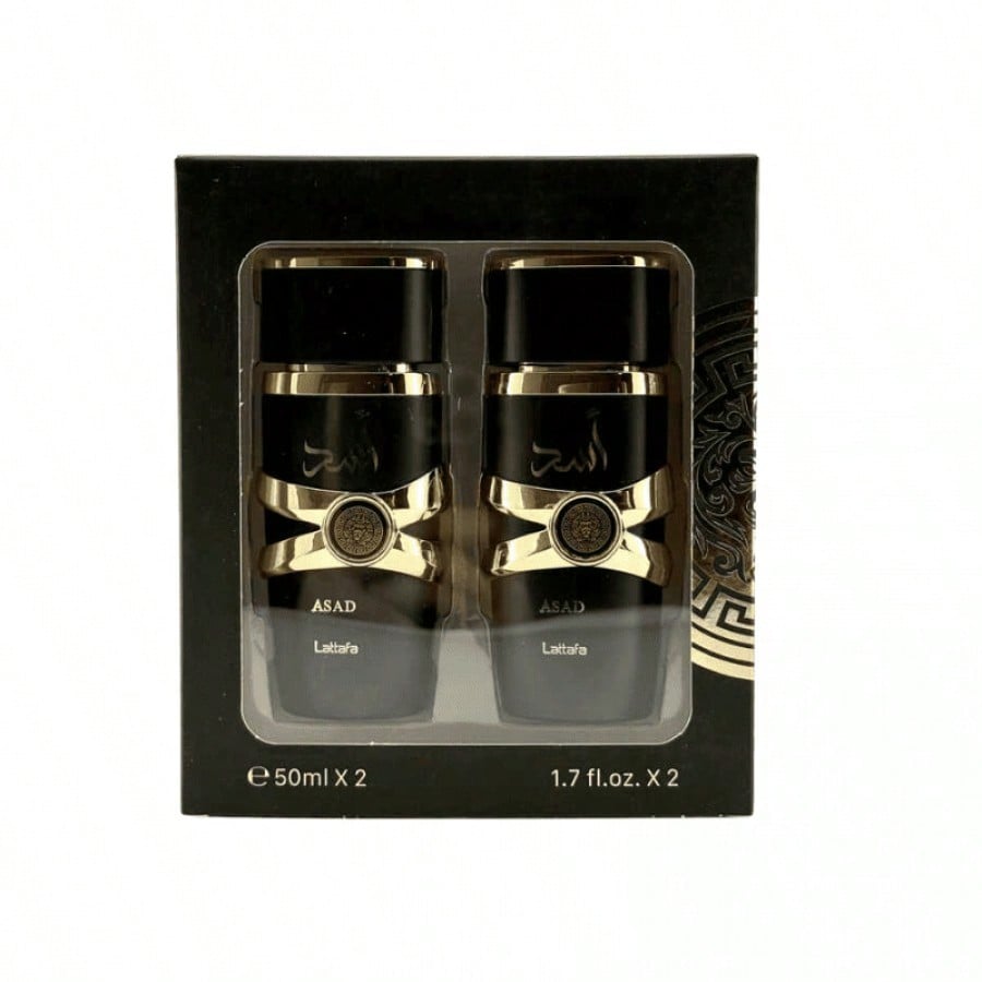 Práctico juego de dos fragancias árabes para hombre, cada una de 50 ml. Perfecto para llevar tu aroma favorito a todas partes o para tener dos opciones distintas. Disfruta de la esencia oriental y su notable persistencia en un formato más versátil.