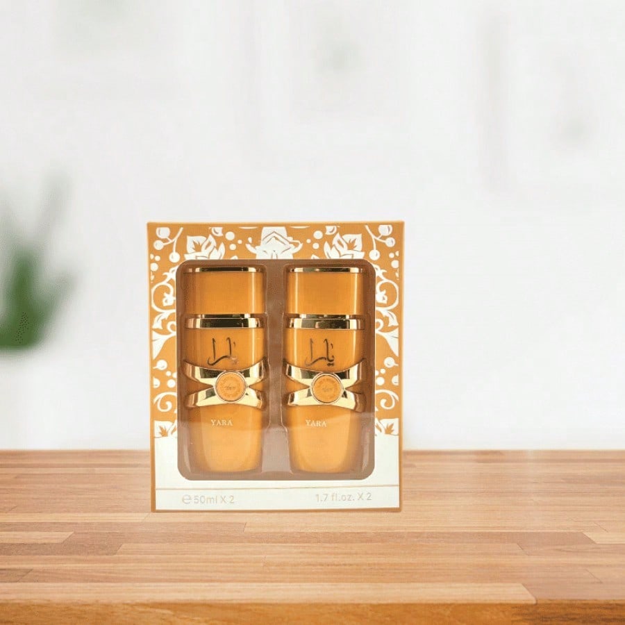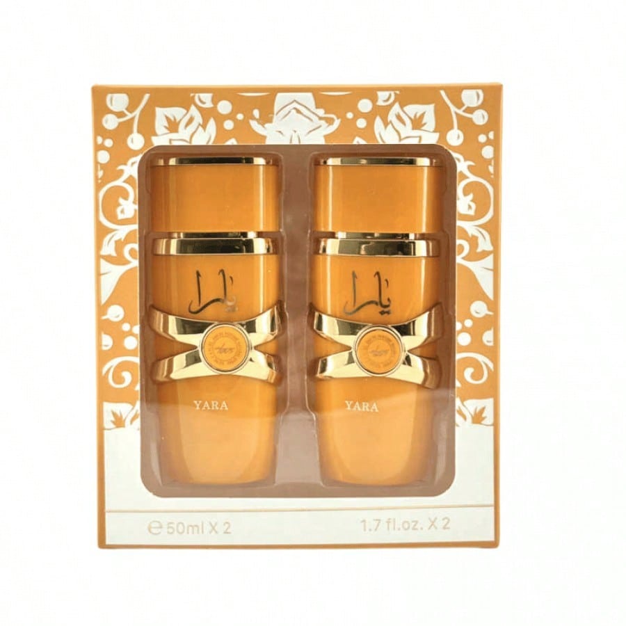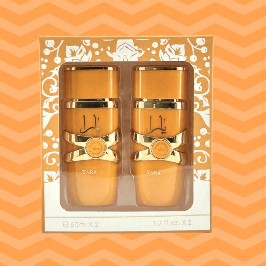Este set incluye dos frascos de perfume árabe para mujer, ideales para variar tu aroma o para llevar uno contigo. Disfruta de la riqueza y durabilidad de las fragancias orientales en un formato práctico y perfecto para regalar o para tu uso diario.
