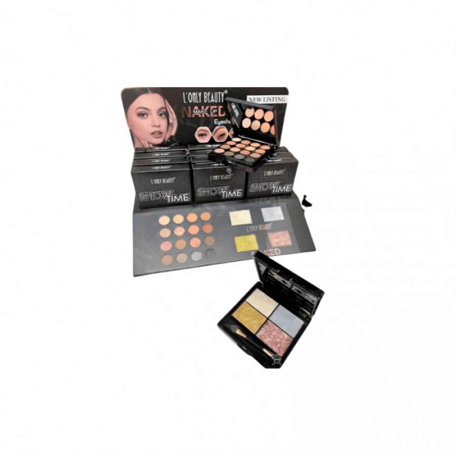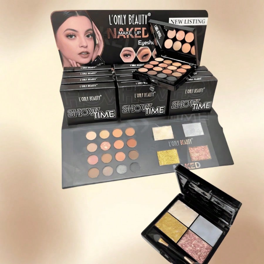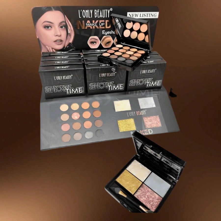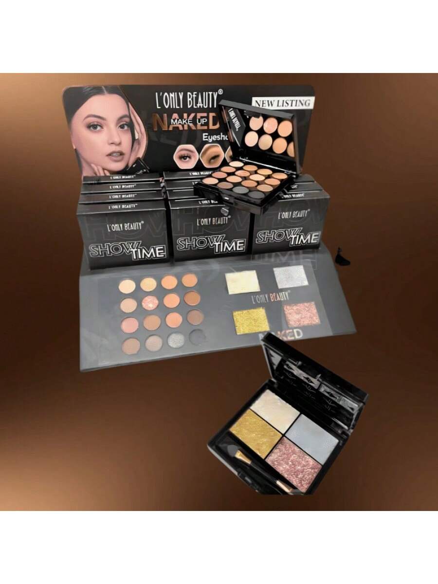Set combinado que incluye sombras de ojos junto con glitter para crear looks brillantes y multidimensionales. Perfecto para ocasiones especiales donde buscas un maquillaje de impacto con un toque de luminosidad y diversión.