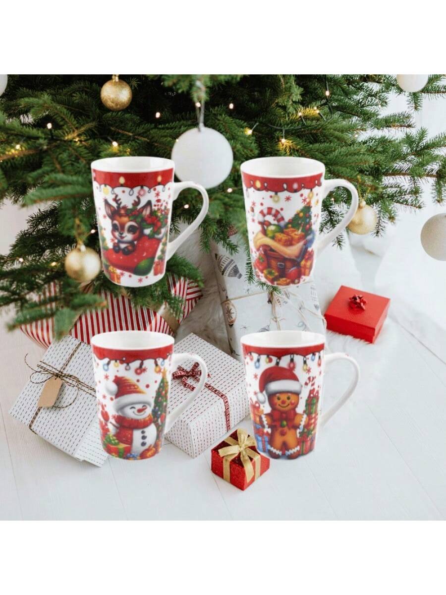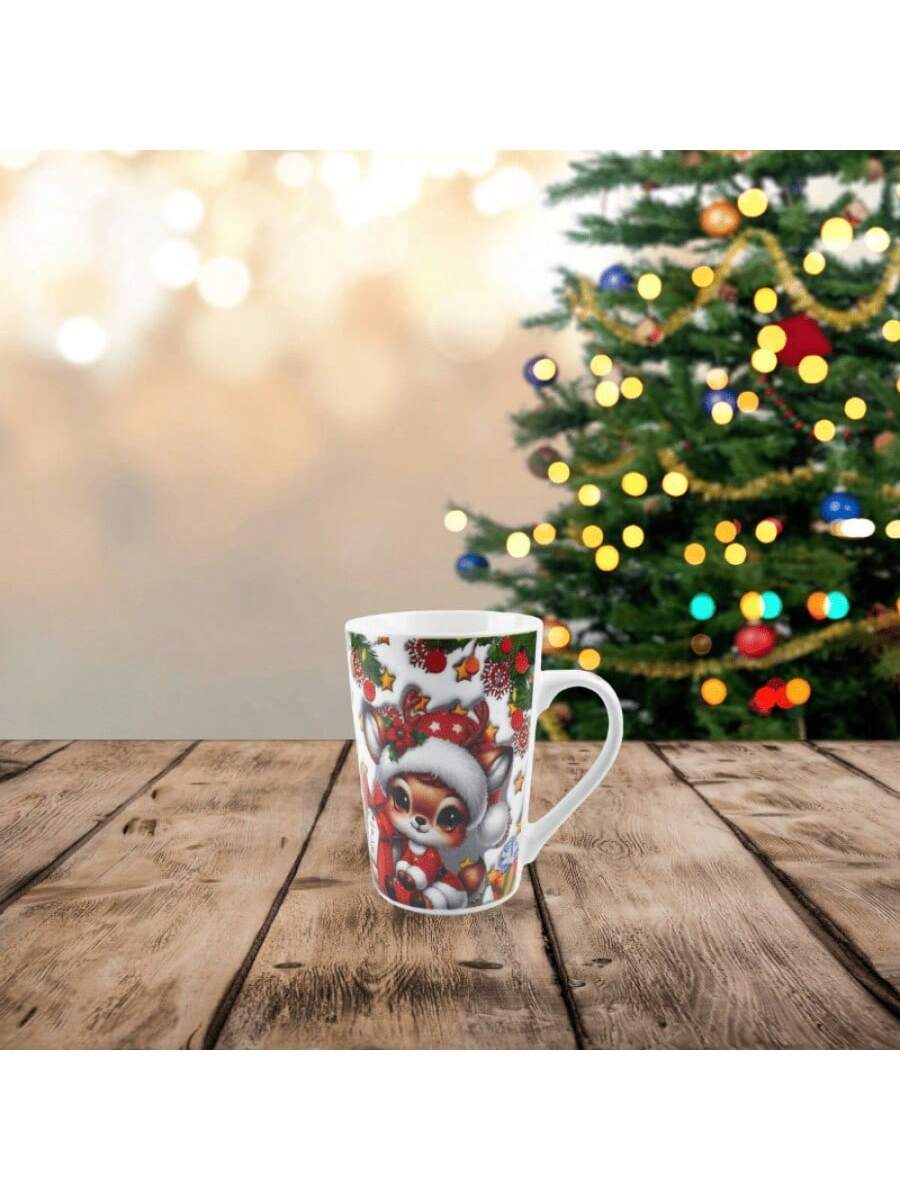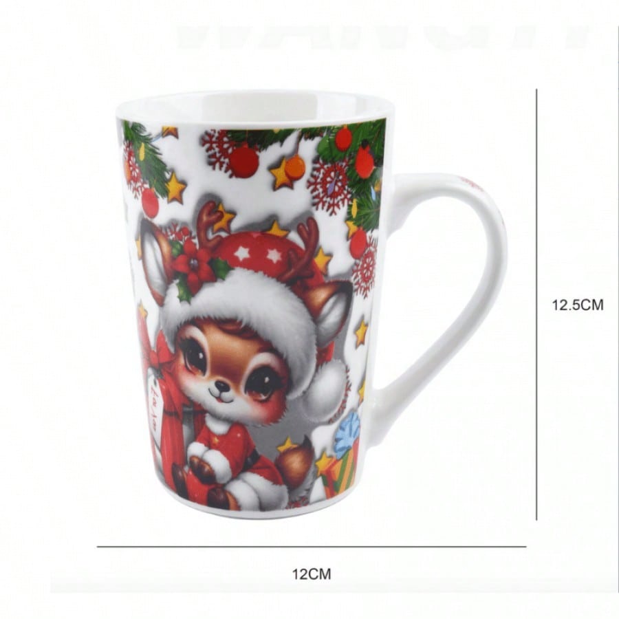 Taza de cerámica de estilo navideño 450ML, gran capacidad para necesidades, esmalte liso fácil de limpiar, patrón navideño lindo, adecuada para regalo o uso personal.