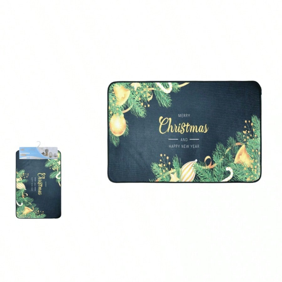 Alfombra de felpa cristal navideña 750g 40×60cm, gruesa y suave, estampa clara y tridimensional, absorbe agua y antideslizante, ideal para entrada y baño, combina atmósfera festiva y practicidad.