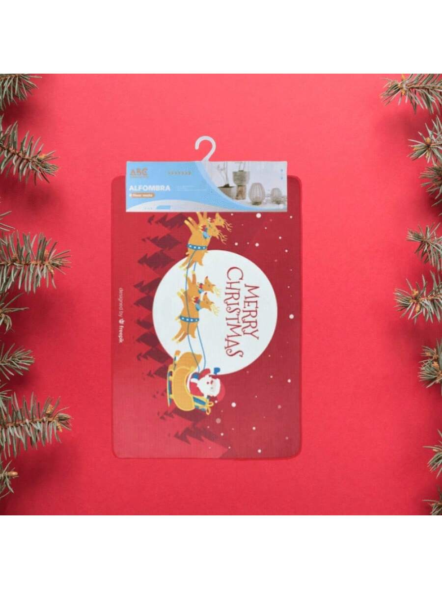 Alfombra de felpa cristal navideña 750g 50×80cm, gruesa y suave, estampa colorida, abrigadora y antideslizante, ideal para salón y dormitorio, agrega calidez festiva.