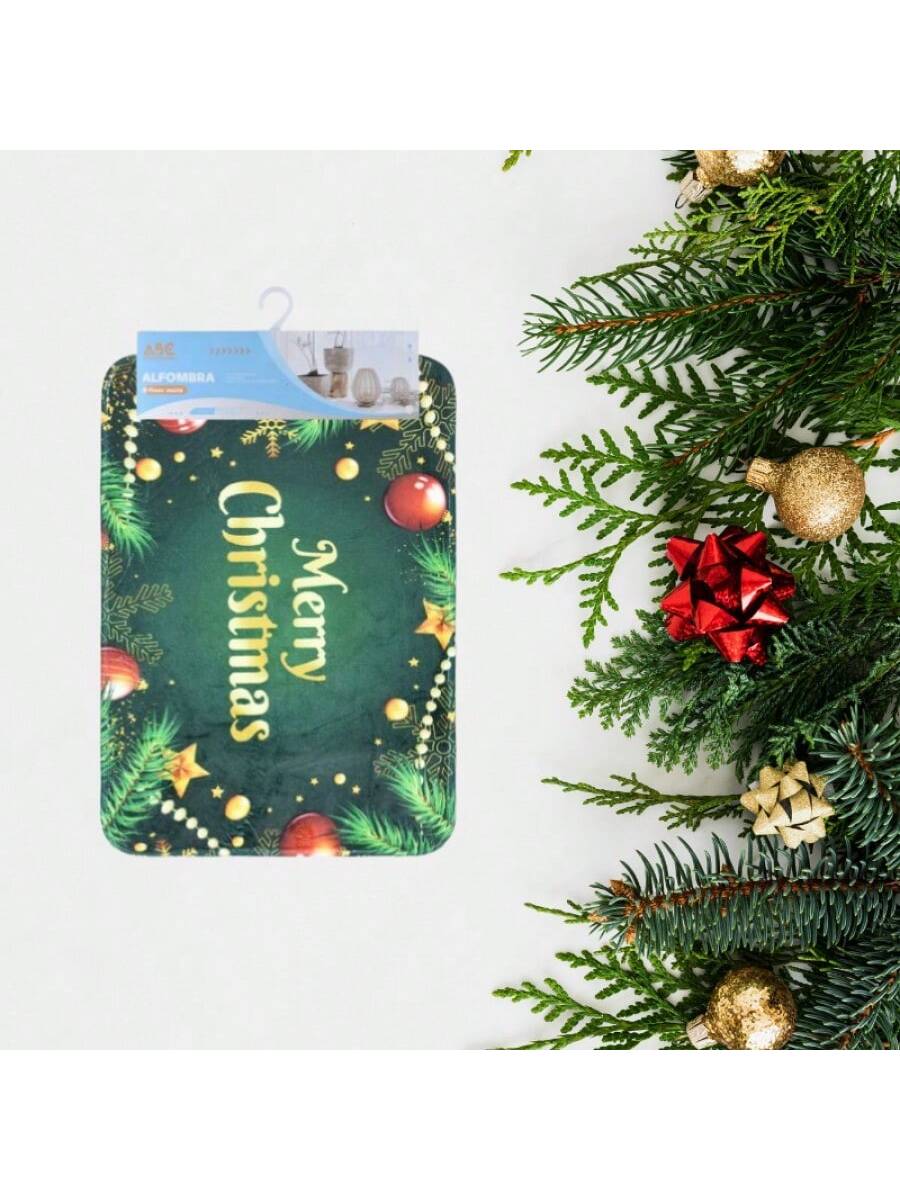 Alfombra de esponja con franela navideña 40×60cm, superficie de franela suave, capa de esponja absorbe agua, estampa exquisita, antideslizante y duradera, esencial para hogar festivo.