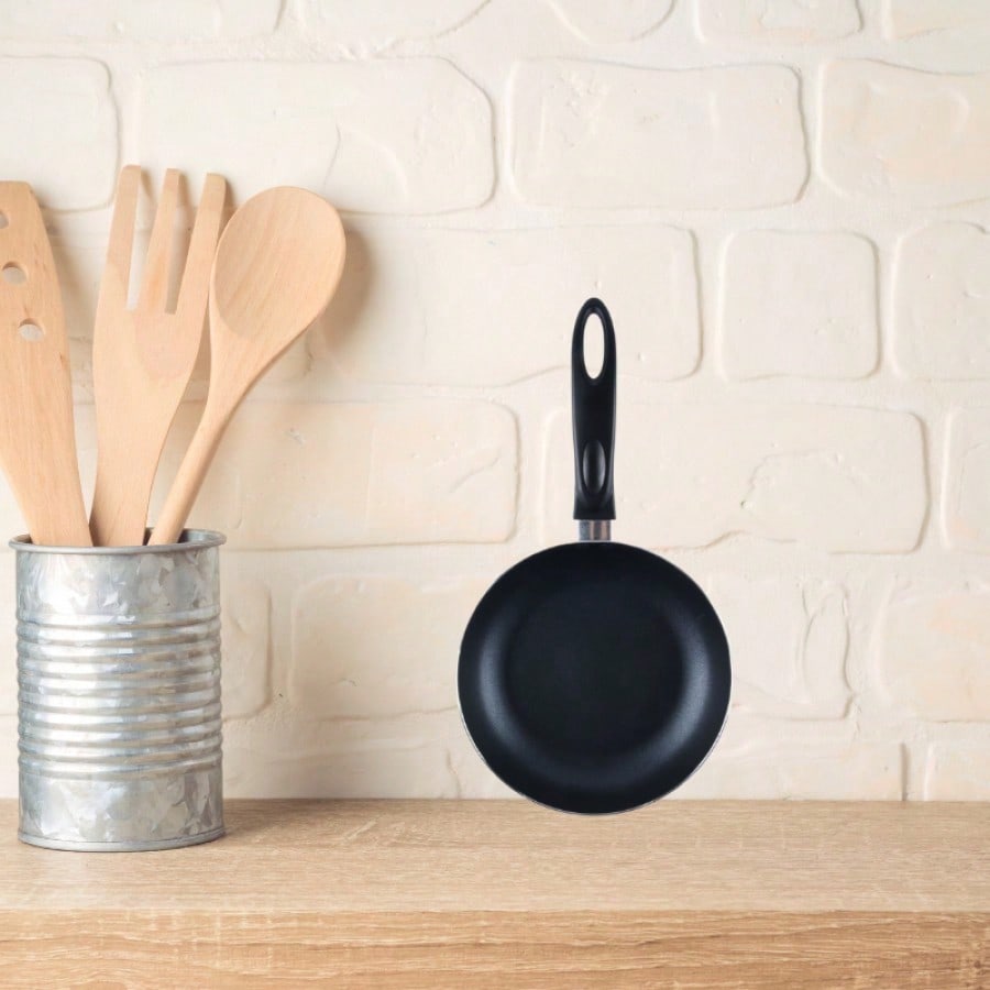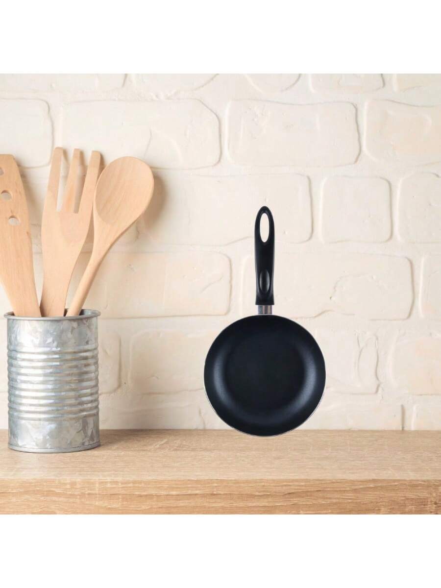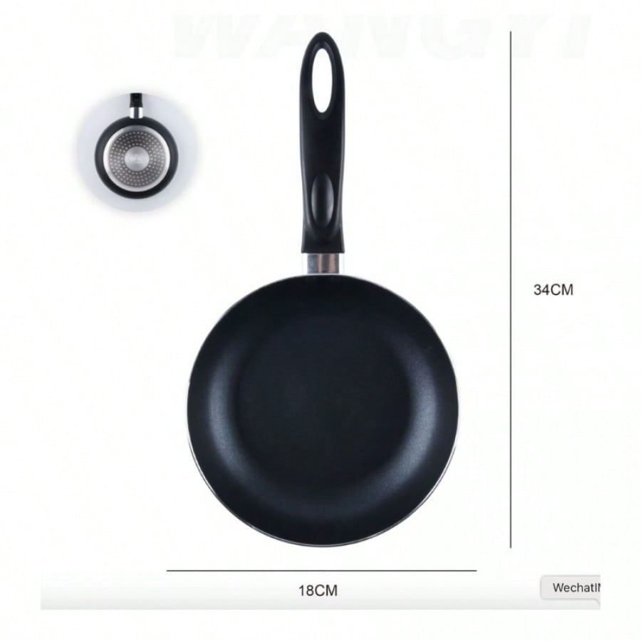 Sartén estirada 18CM, tamaño pequeño sin ocupar espacio, material delgado con conducción térmica rápida, ideal para comidas individuales o ingredientes en pequeñas porciones, práctico para huevos fritos y jamón frito.