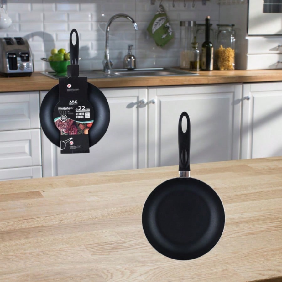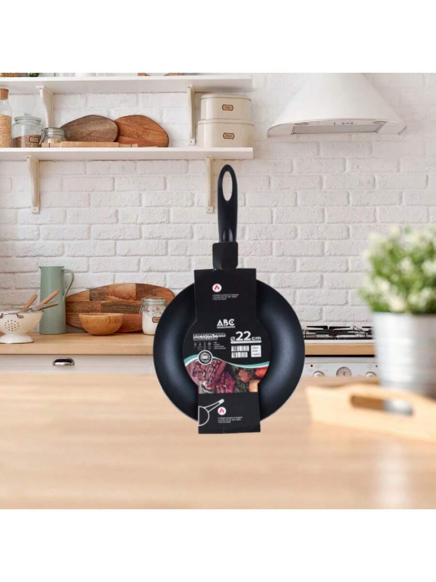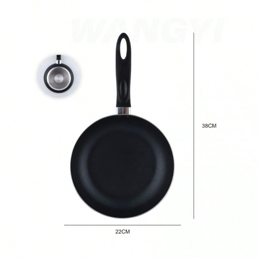 Sartén estirada 22CM, capacidad para 2-3 personas, material delgado y fácil de almacenar, conducción térmica uniforme, suitable para huevos fritos, filete frito y verduras salteadas.