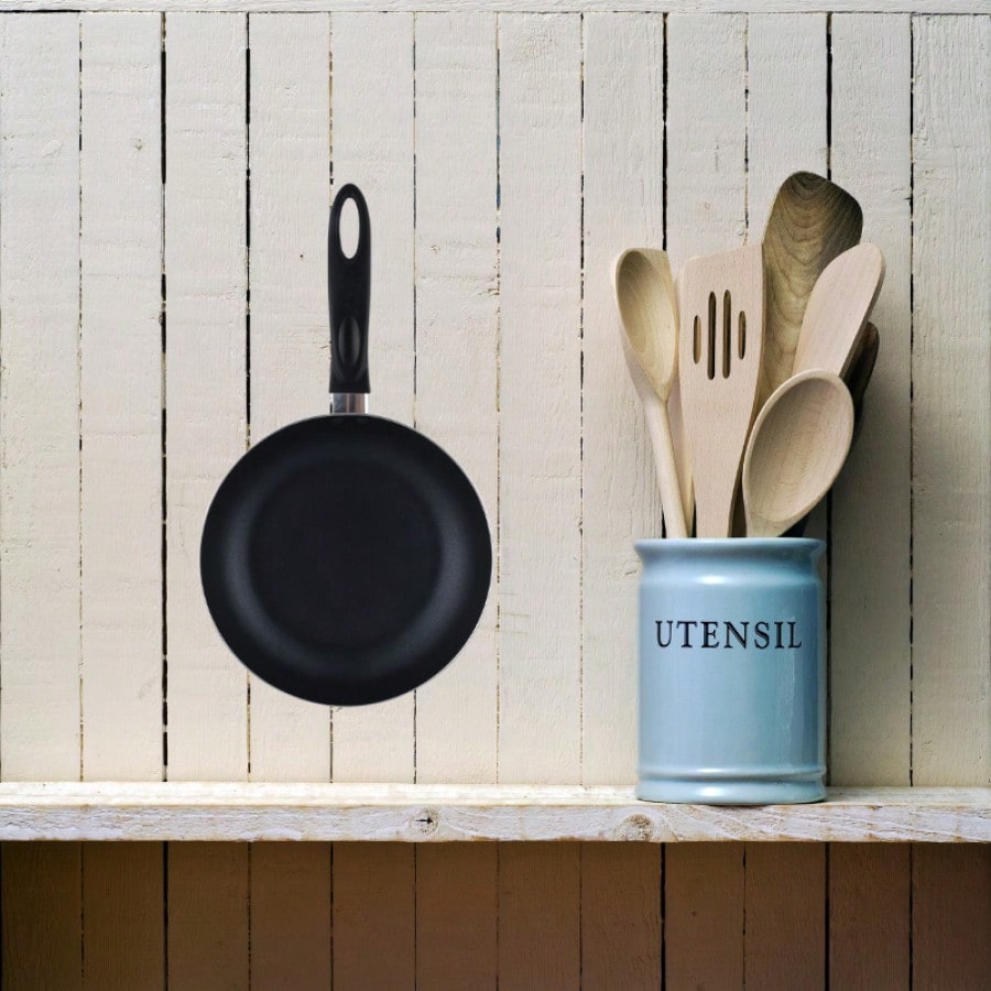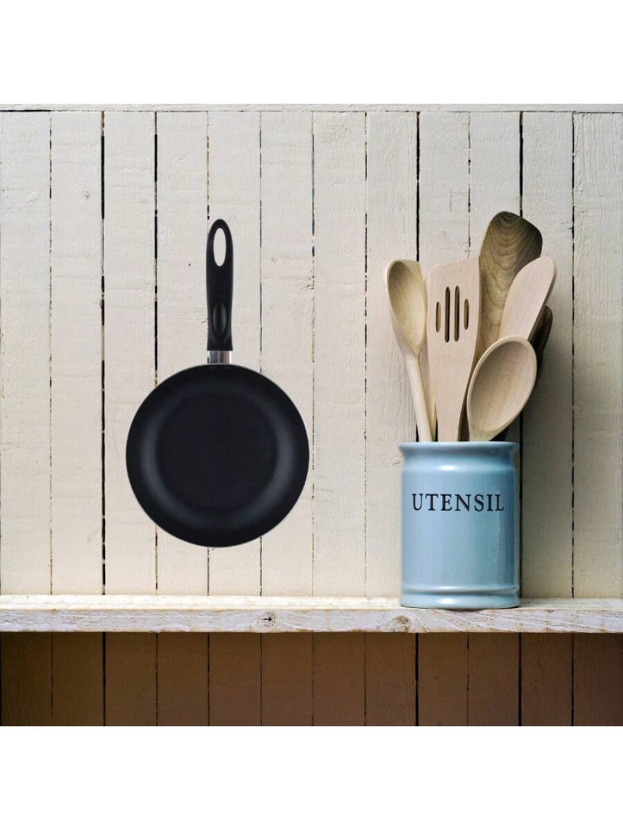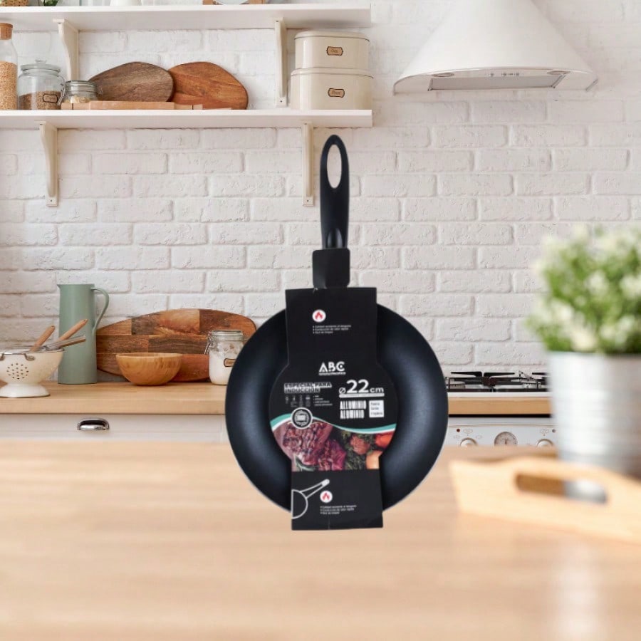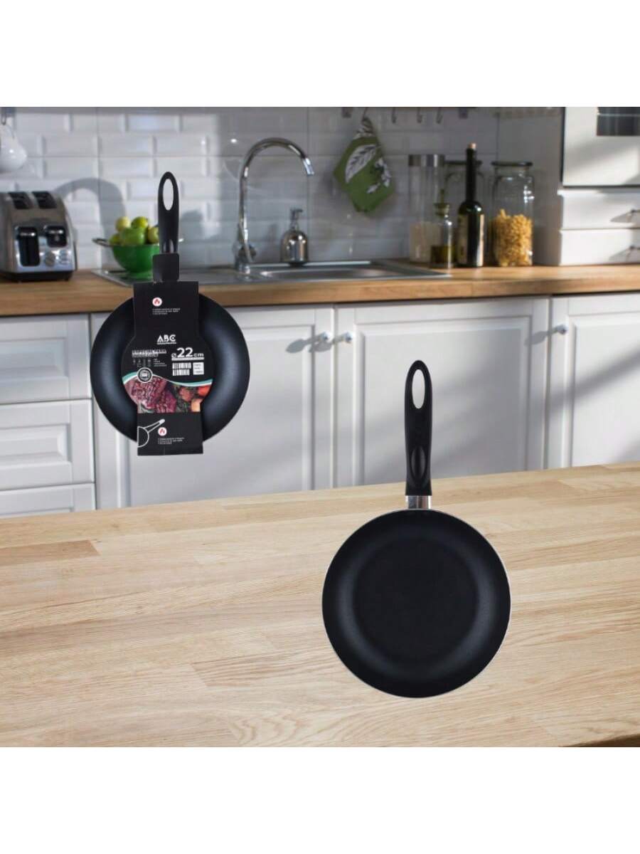 Sartén estirada 22CM, capacidad para 2-3 personas, material delgado y fácil de almacenar, conducción térmica uniforme, suitable para huevos fritos, filete frito y verduras salteadas.