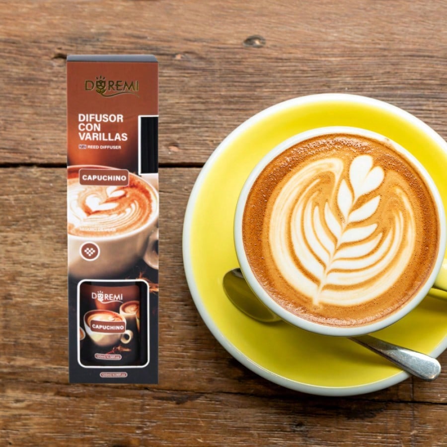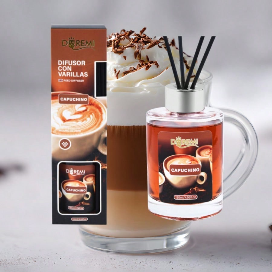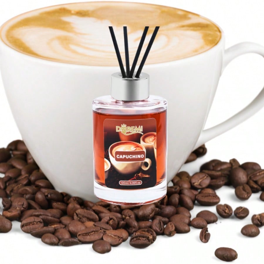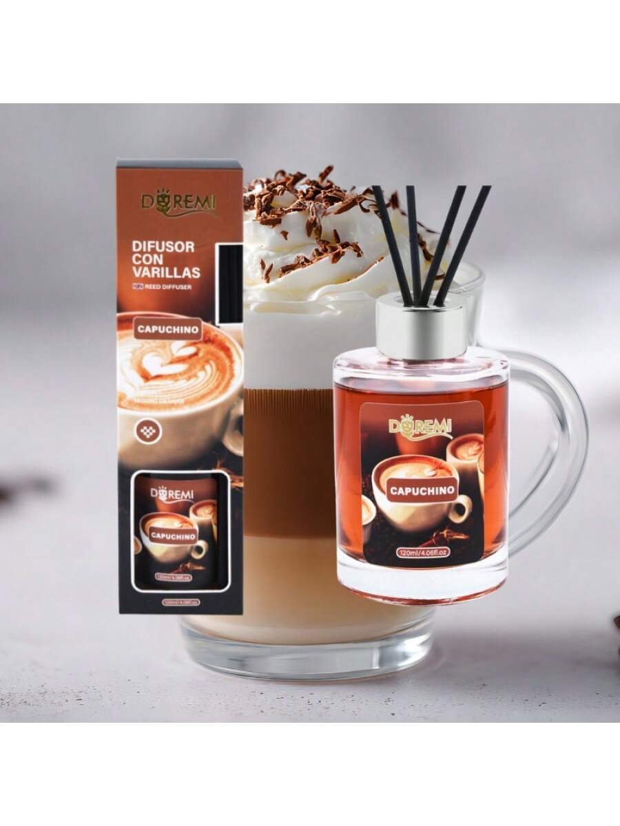 Aromatizante 120ml Cappuccino (CAPUCCINO), combina aroma de café y leche, rico y intenso, ideal para estudio y salón, crea atmósfera agradable.