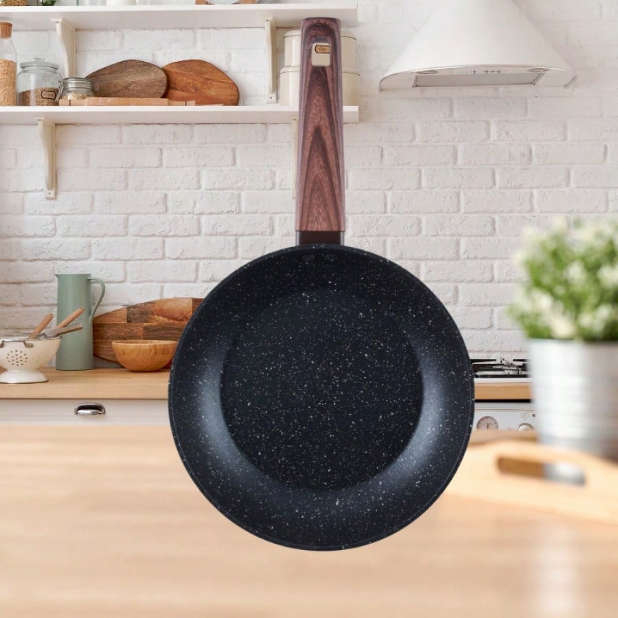 Sartén de presión simulada 22CM, buen efecto de retención de temperatura, tiempo de cocina corto, ingredientes tiernos y jugosos, revestimiento antiadherente fácil de limpiar, suitable para cocinar porciones para 2-3 personas.