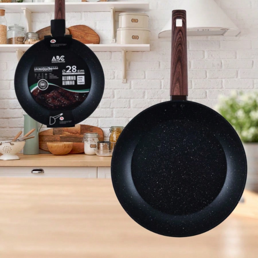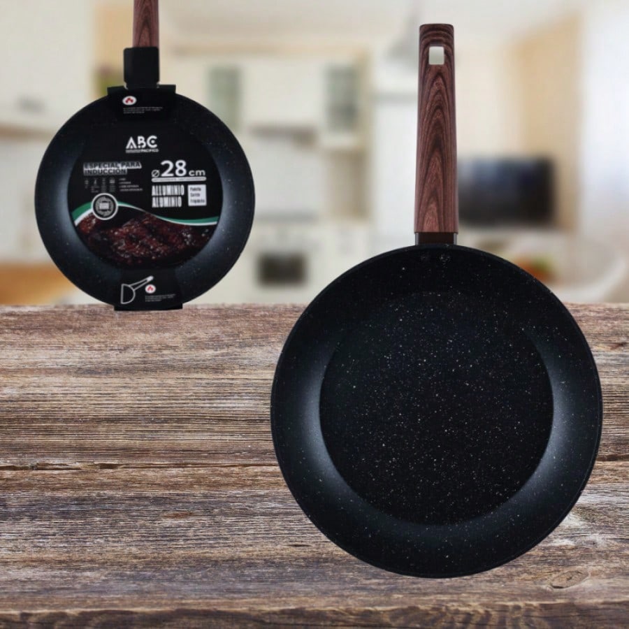 Sartén de presión simulada 28CM, gran tamaño para porciones grandes, diseño de presión simulada retiene sabor y frescura, ingredientes con textura tierna, material antiadherente fácil de cuidar, buena ayuda para comidas familiares.