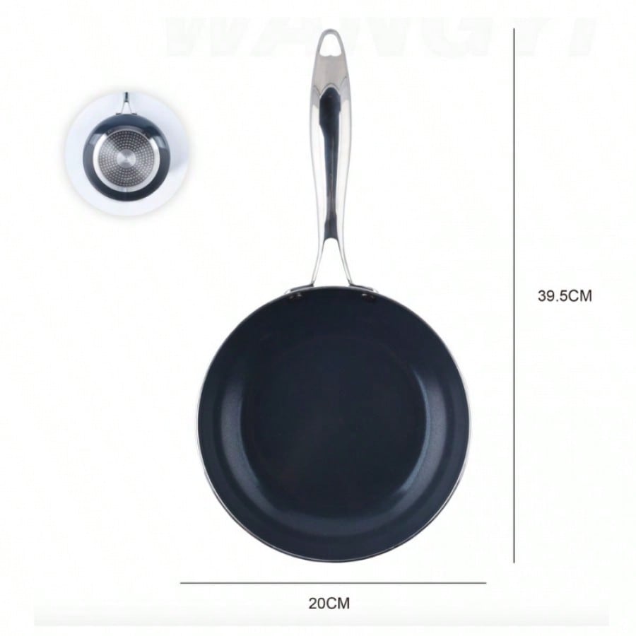 Sartén estirada 20CM, tamaño adecuado, material resistente y duradero, conducción térmica rápida y uniforme, revestimiento antiadherente fácil de limpiar, suitable para freír, saltear, cocinar y fritos diarios.