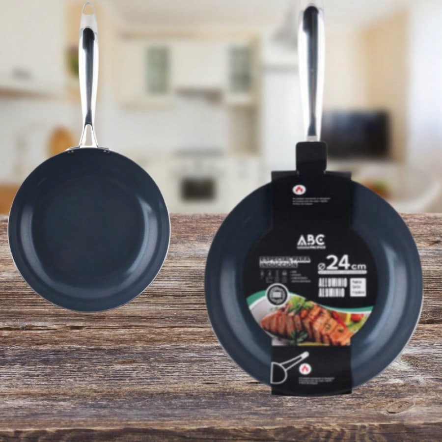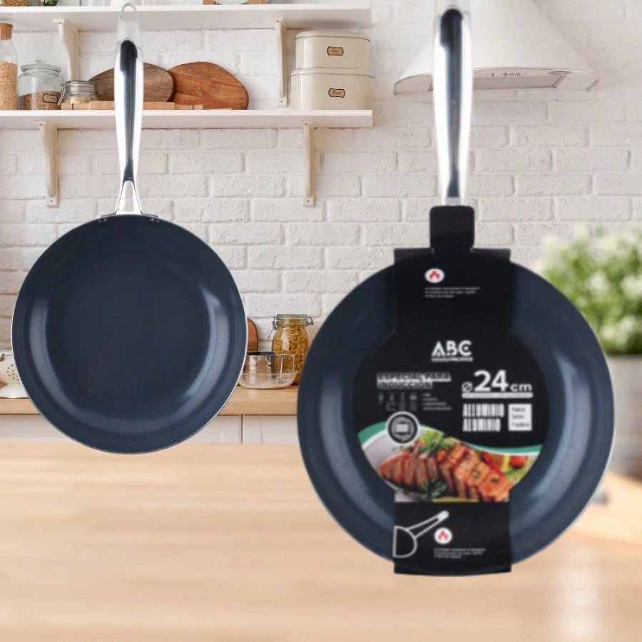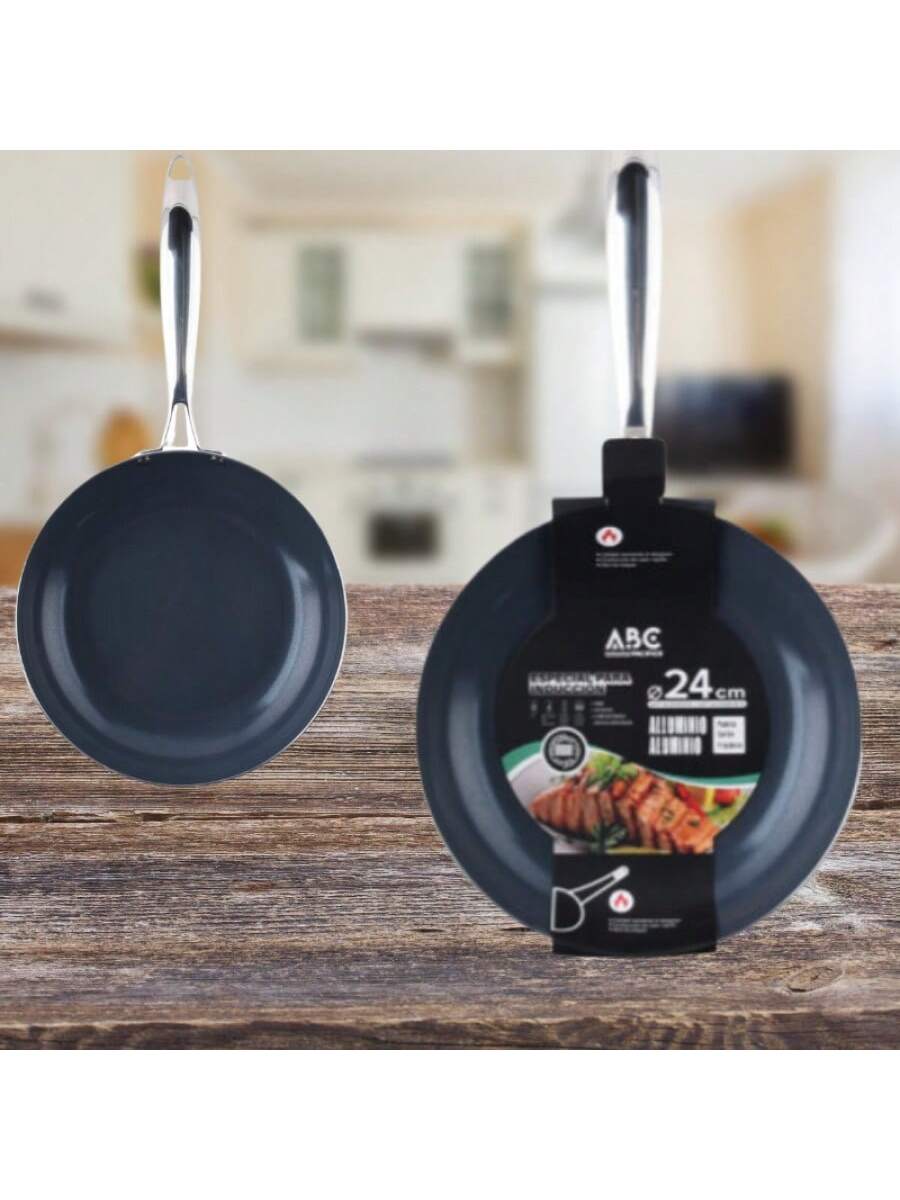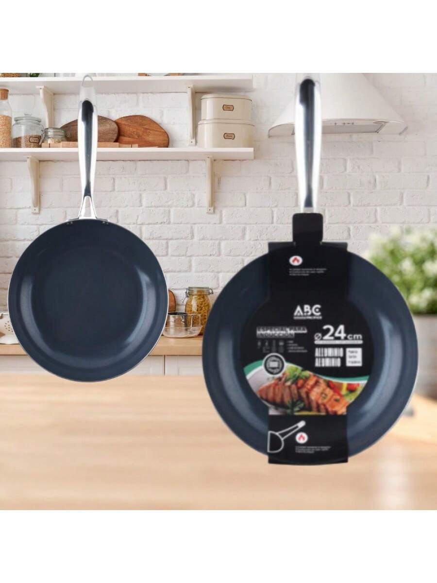Sartén estirada 24CM, tamaño versátil y práctico, material delgado y fácil de almacenar, conducción térmica uniforme, revestimiento antiadherente fácil de cuidar, suitable para freír, saltear y fritos diarios.