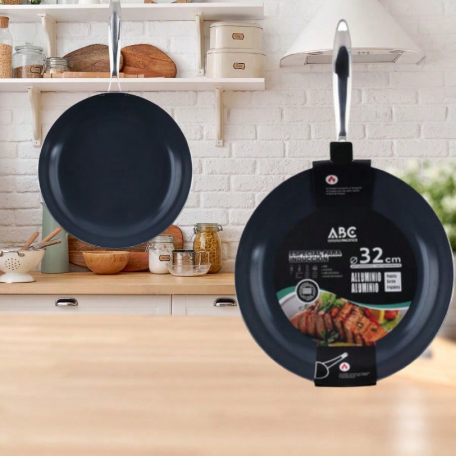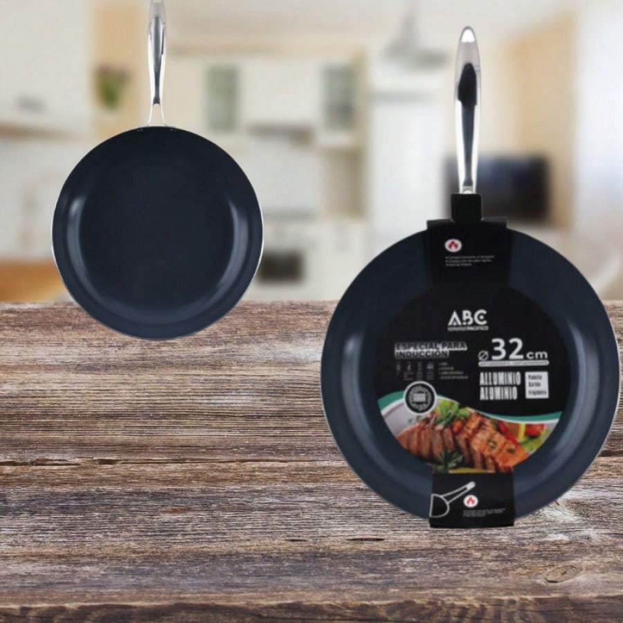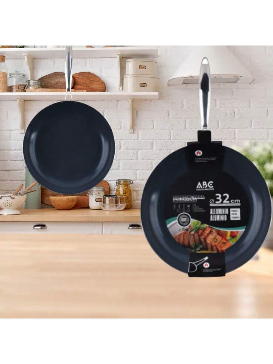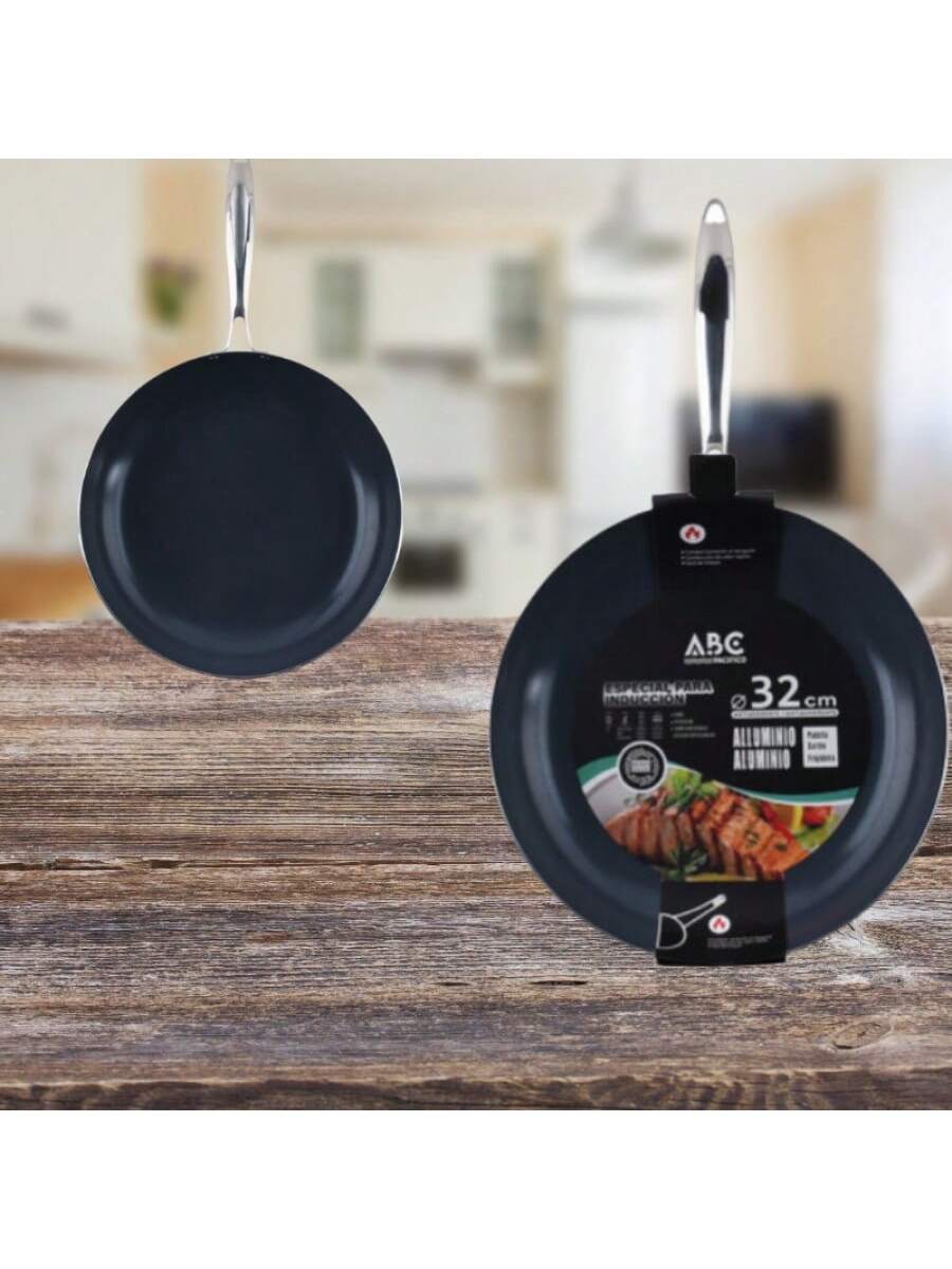 Sartén estirada 32CM, extragrande tamaño para comidas en grupo o cocina por lotes, material duradero con conducción térmica uniforme, antiadherente y fácil de limpiar, competente para trabajos pesados como freír y saltear.