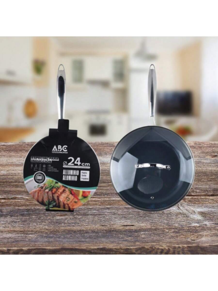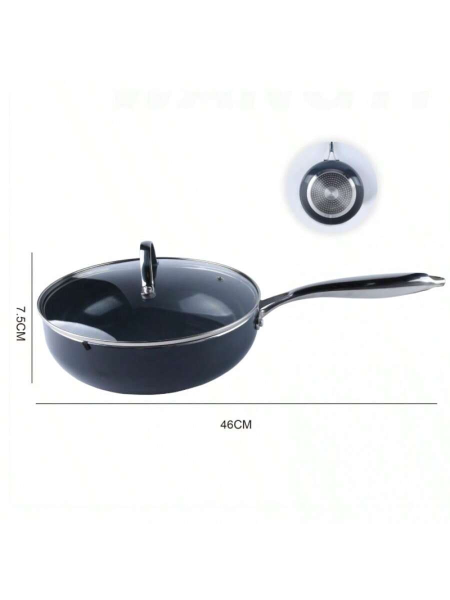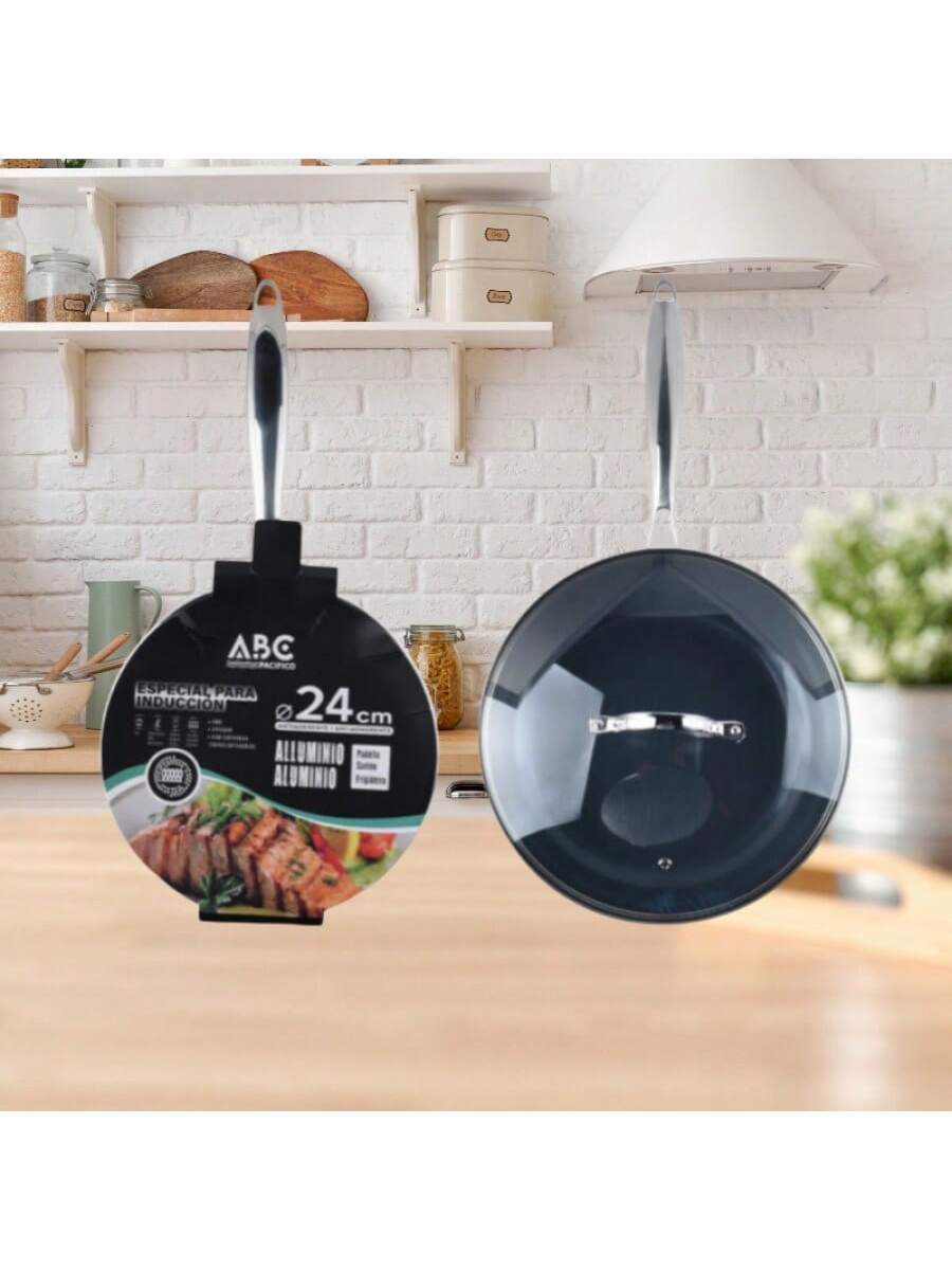 Sartén profunda estirada con tapa 24CM, diseño profundo suitable para freír, frito, estofar y cocinar, tapa retiene temperatura y frescura, material antiadherente fácil de limpiar, funciones completas para cocina diaria.
