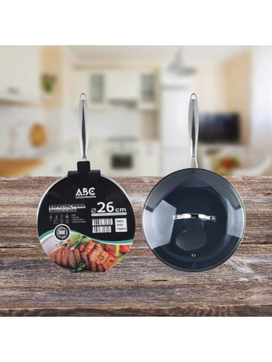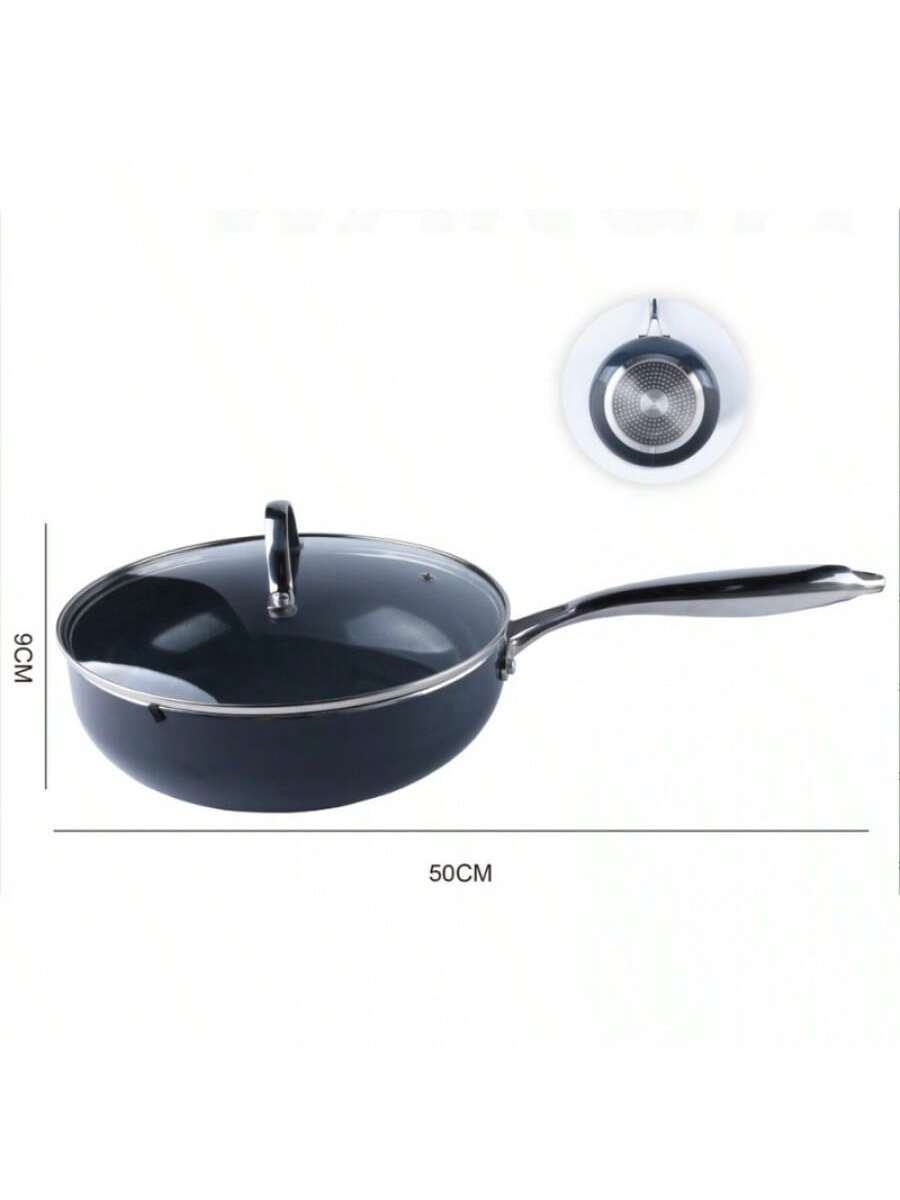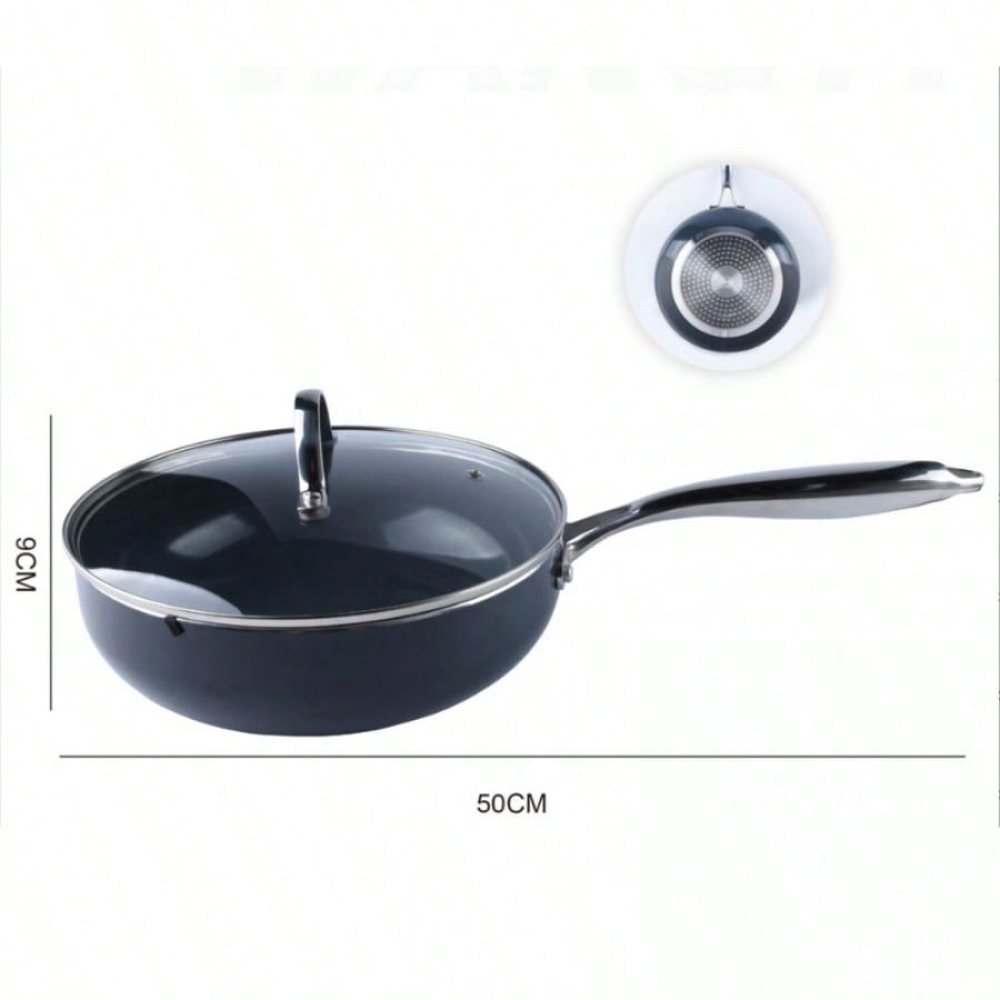 Sartén profunda estirada con tapa 28CM, gran capacidad para comidas familiares, diseño profundo puede freír y estofar, tapa retiene temperatura y sabor, antiadherente y fácil de limpiar, alta practicidad culinaria.