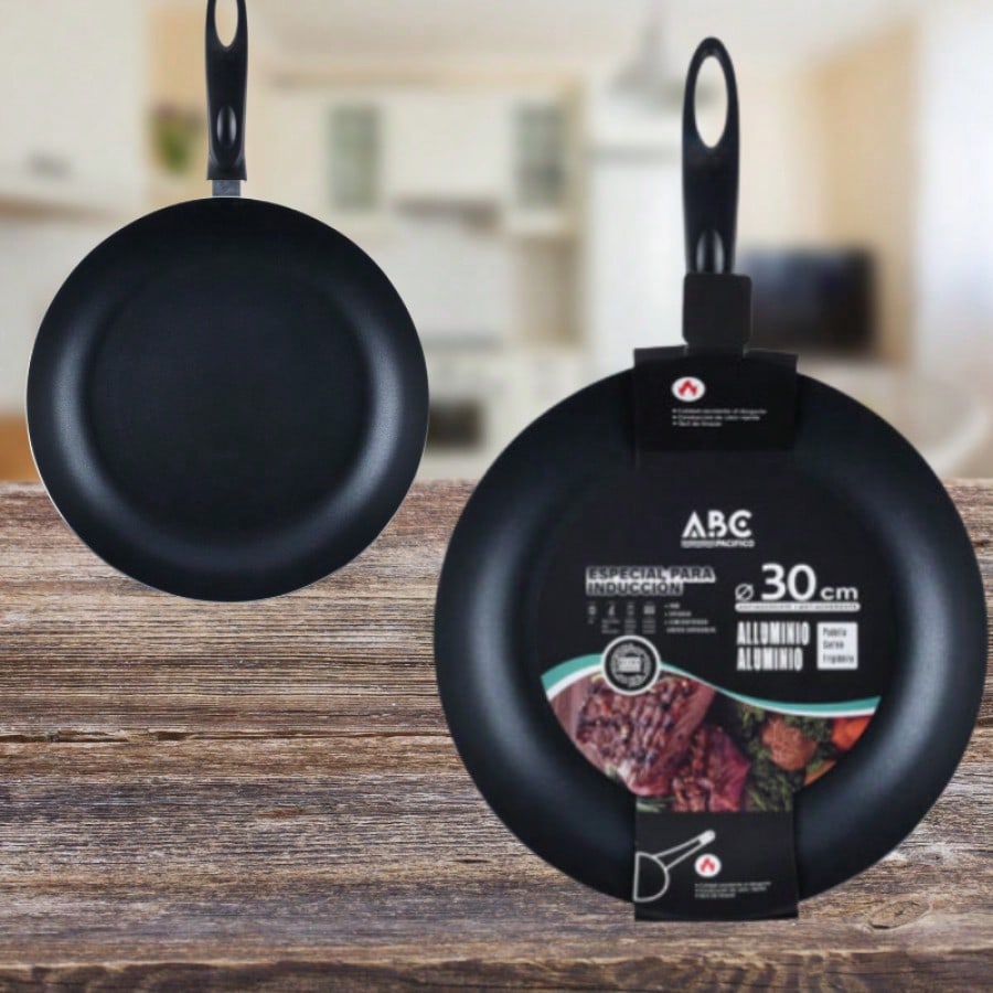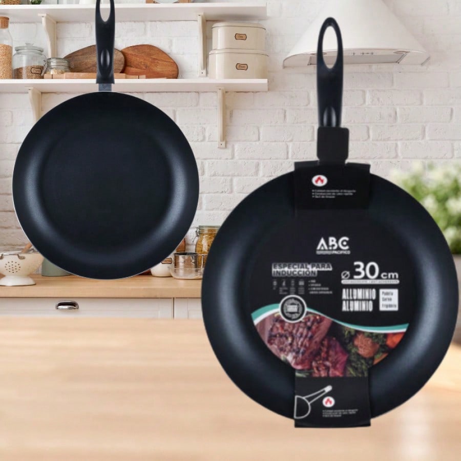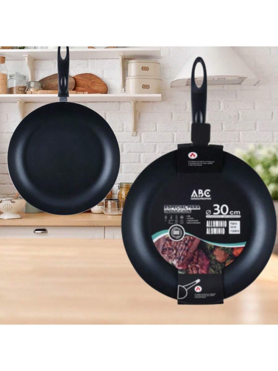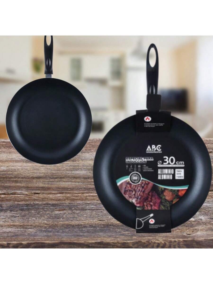Sartén estirada 30CM, extragrande capacidad para comidas en grupo, material duradero con conducción térmica uniforme, antiadherente y fácil de limpiar, competente para cocinas de fuerte sabor como saltear a fuego alto.