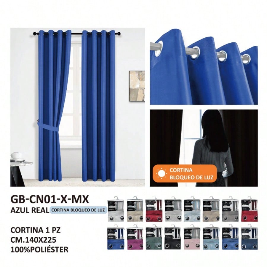 Estas cortinas confeccionadas en tela GB de un profundo color azul real están diseñadas para ofrecer una alta durabilidad y resistencia. Con sus dimensiones estándar de 140x225 cm, se adaptan perfectamente a la mayoría de ventanas, aportando un toque de sofisticación, calma y elegancia clásica a cualquier espacio. Su tono intenso y versátil añade carácter a la decoración, mientras que la calidad de la tela garantiza una larga vida útil y un aspecto lujoso y siempre impecable.