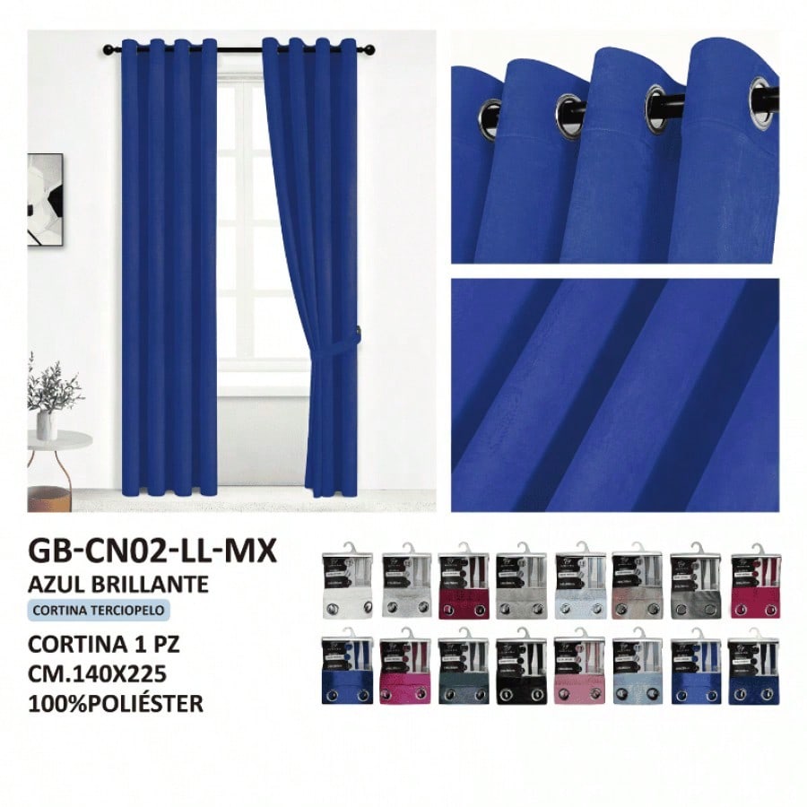 Estas exclusivas cortinas están confeccionadas en tela GB de terciopelo de un intenso color azul brillante, diseñadas para ofrecer una alta durabilidad y resistencia. Con dimensiones estándar de 140x225 cm, aportan un toque de lujo, profundidad y elegancia moderna a cualquier espacio. La rica textura aterciopelada y el tono vibrante crean un efecto visual sofisticado, perfecto para ambientes que buscan un equilibrio entre serenidad y un estilo distinguido, asegurando además una larga vida útil y una presencia imponente.