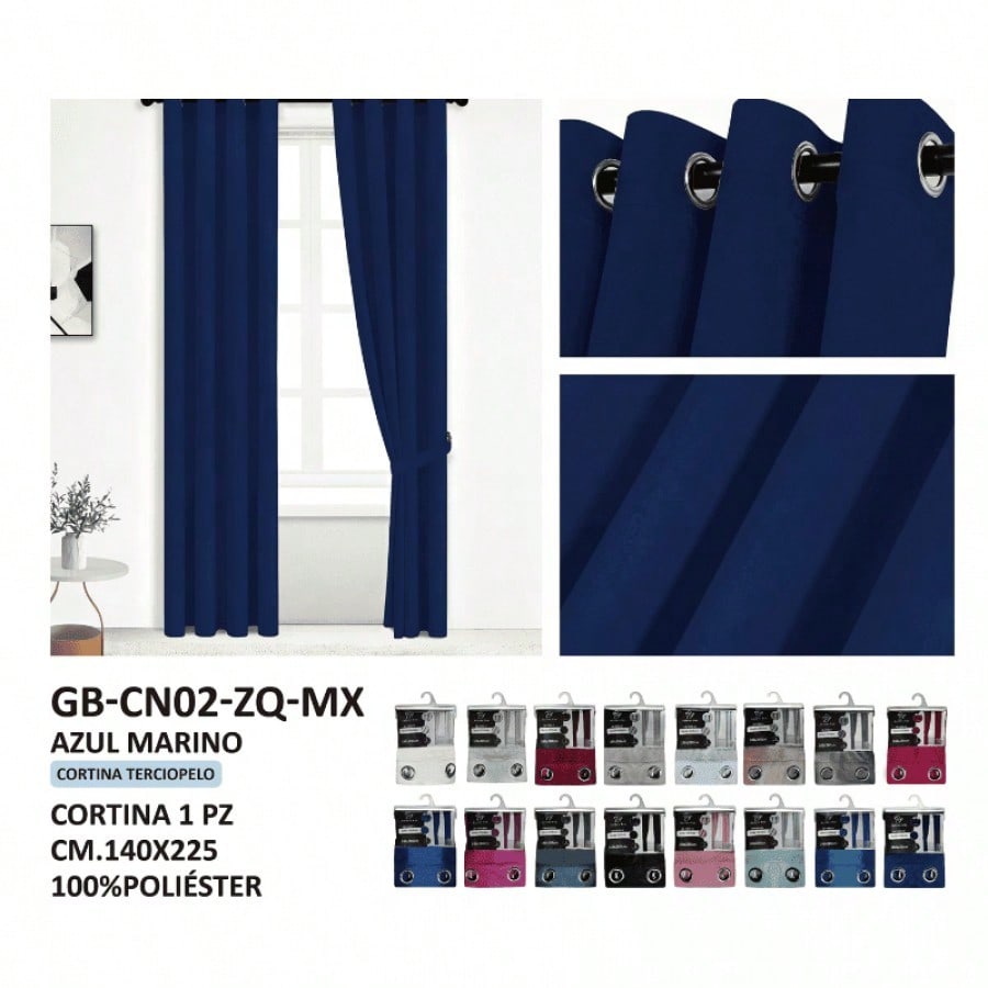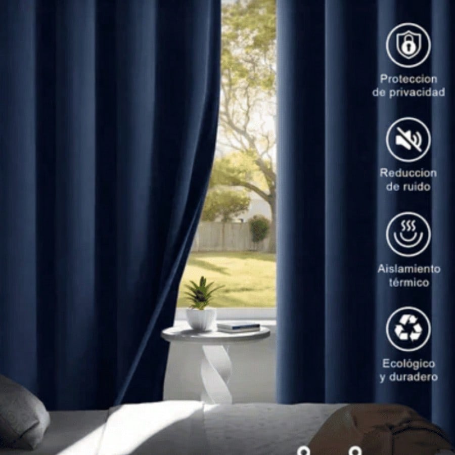 Estas cortinas de sofisticada apariencia están confeccionadas en tela GB de terciopelo de un intenso color azul marino, diseñadas para ofrecer una alta durabilidad y resistencia. Con dimensiones estándar de 140x225 cm, aportan un toque de profundidad, elegancia moderna y calma lujosa a cualquier espacio. La textura aterciopelada y el tono oscuro y envolvente crean una atmósfera serena y acogedora, ideal para ambientes que buscan un equilibrio entre estilo contemporáneo y un toque clásico y distinguido, asegurando además una larga vida útil y una presencia siempre majestuosa.