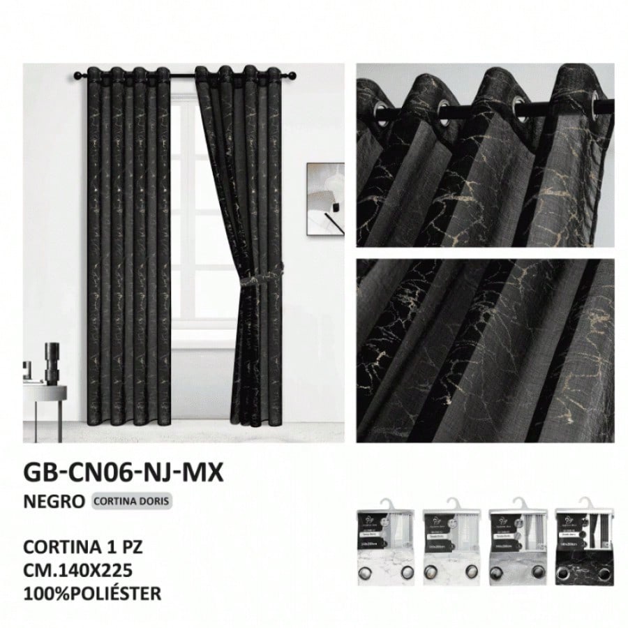 Estas cortinas transparentes en un elegante y atemporal color negro, confeccionadas en tela GB, están diseñadas para ofrecer una alta durabilidad y resistencia. Con dimensiones estándar de 140x225 cm, filtran la luz natural de manera sutil, creando un ambiente de sofisticación, contraste moderno y misterio controlado en cualquier espacio. Su tono intenso y versátil añade un toque de drama y elegancia a la decoración, mientras que su tejido transparente y duradero garantiza un uso prolongado y un aspecto siempre impactante y refinado.