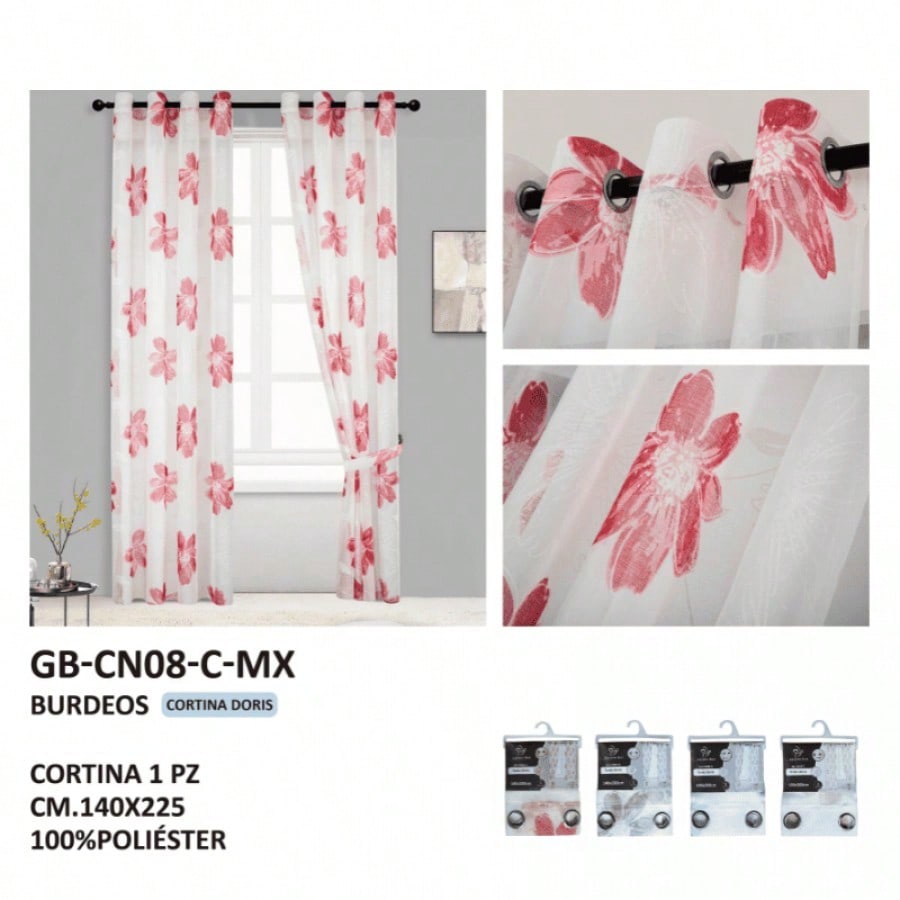 Estas cortinas transparentes en un profundo y sofisticado color burdeos, confeccionadas en tela GB, están diseñadas para ofrecer una alta durabilidad y resistencia. Con dimensiones estándar de 140x225 cm, filtran la luz natural otorgando una cálida y tenue tonalidad, creando un ambiente de elegancia clásica, calidez y distinción en cualquier espacio. Su rico tono aporta un toque de lujo y personalidad a la decoración, mientras que su tejido transparente y duradero garantiza un uso prolongado y un aspecto siempre refinado y acogedor.