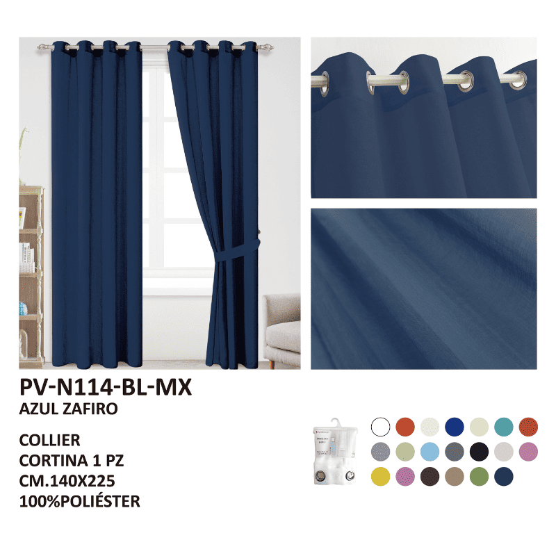 Estas cortinas transparentes en un brillante color azul zafiro, confeccionadas en material de alta calidad, están diseñadas para ofrecer una alta durabilidad y resistencia. Con dimensiones estándar de 140x225 cm, filtran la luz natural otorgando un suave tono azulado y sereno, creando un ambiente de calma, frescura y elegancia luminosa en cualquier espacio. Su tono vibrante y translúcido aporta un toque de sofisticación sutil, integrándose armoniosamente en decoraciones modernas o costeras, mientras que su material garantiza un uso prolongado y un aspecto siempre refinado y acogedor.