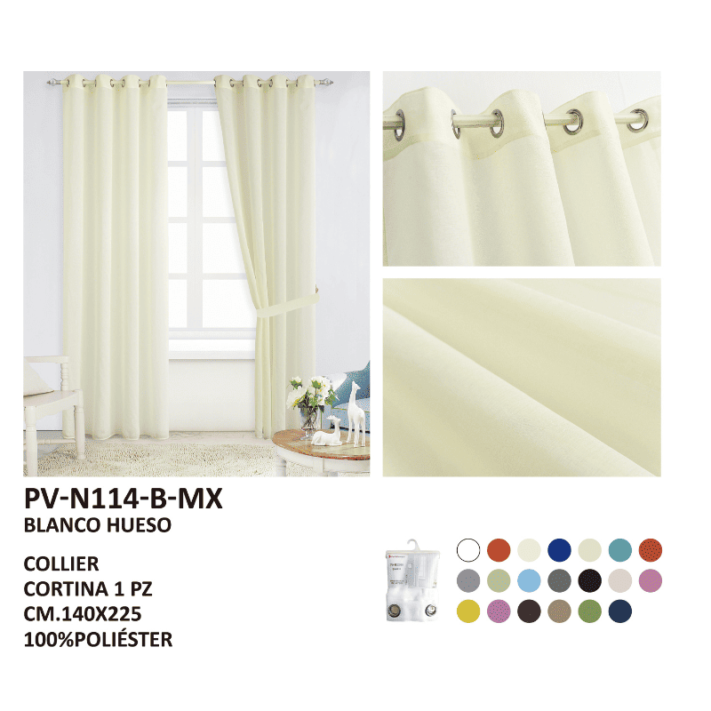 Estas cortinas transparentes en un cálido color blanco hueso, confeccionadas en material de alta calidad, están diseñadas para ofrecer una alta durabilidad y resistencia. Con dimensiones estándar de 140x225 cm, filtran la luz natural proporcionando una luminosidad suave y acogedora, creando un ambiente sereno, elegante y con un toque de calidez en cualquier espacio. Su tono neutro y versátil aporta una elegancia discreta, integrándose perfectamente en estilos decorativos clásicos, modernos o minimalistas, mientras que su material garantiza un uso prolongado y un aspecto siempre refinado y luminoso.