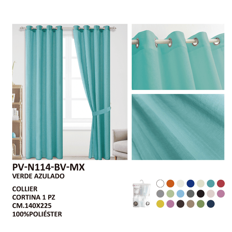 Estas cortinas transparentes en un refrescante color verde azulado, confeccionadas en material de alta calidad, están diseñadas para ofrecer una alta durabilidad y resistencia. Con dimensiones estándar de 140x225 cm, filtran la luz natural aportando una tonalidad serena y acuática, creando un ambiente de frescura, tranquilidad y elegancia moderna en cualquier espacio. Su tono relajante y luminoso evoca calma y naturalidad, integrándose armoniosamente en decoraciones contemporáneas, costeras o minimalistas, mientras que su material garantiza un uso prolongado y un aspecto siempre sofisticado y revitalizante.