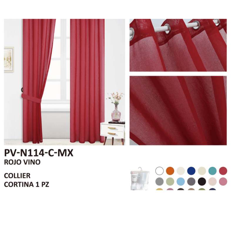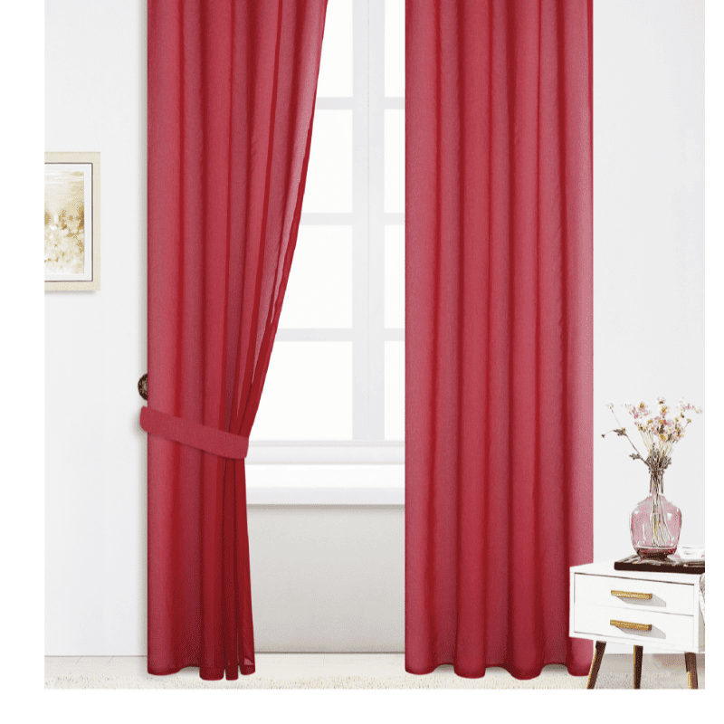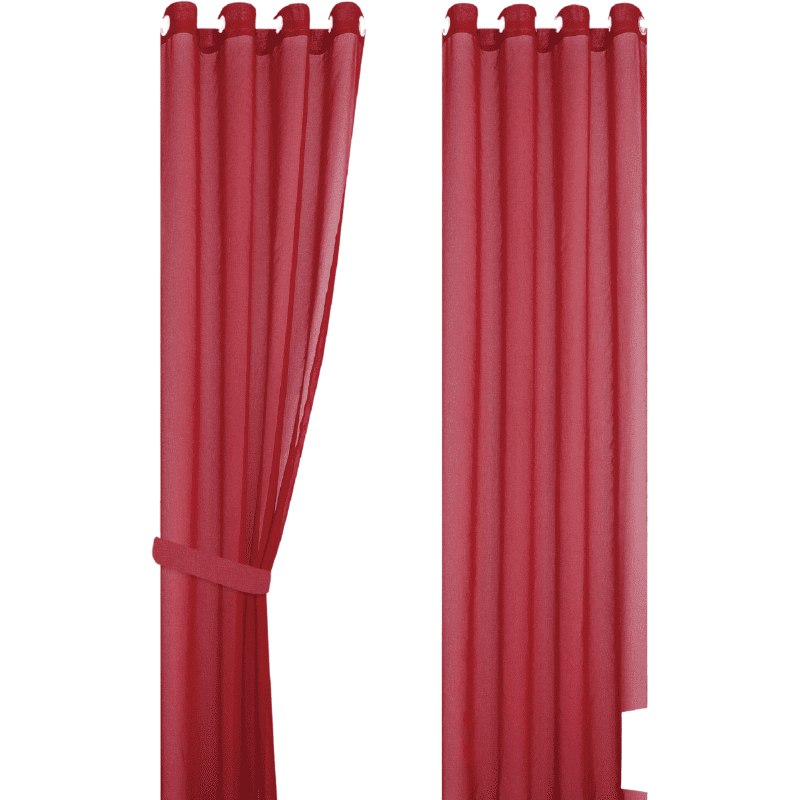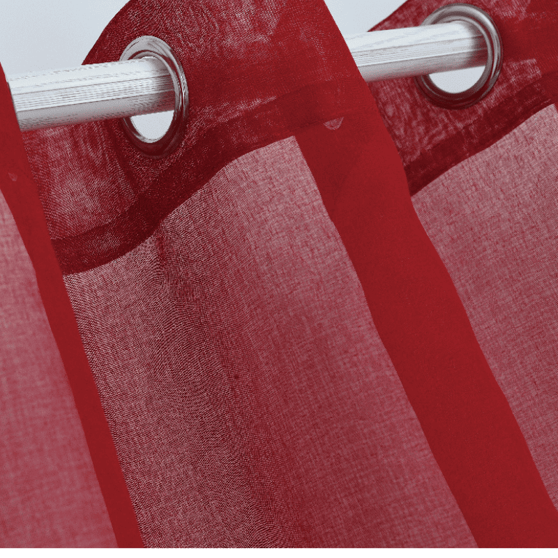 Estas cortinas transparentes en un intenso color rojo vino, confeccionadas en material de alta calidad, están diseñadas para ofrecer una alta durabilidad y resistencia. Con dimensiones estándar de 140x225 cm, filtran la luz natural otorgando una cálida y tenue tonalidad rojiza, creando un ambiente de lujo, calidez profunda y elegancia atemporal en cualquier espacio. Su tono envolvente y sofisticado aporta un carácter distinguido y acogedor, integrándose perfectamente en decoraciones clásicas o modernas con personalidad, mientras que su material garantiza un uso prolongado y un aspecto siempre majestuoso y refinado.