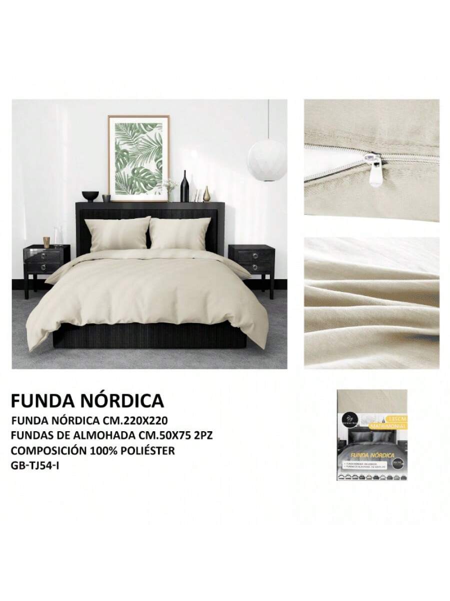 Este kit de funda nórdica monocromática, confeccionada en tela GB de un cálido y neutro color beige, está diseñada para ofrecer una alta durabilidad y resistencia. Con dimensiones cuadradas de 220x220 cm, es ideal para edredones grandes, aportando un toque de calidez suave, elegancia discreta y versatilidad atemporal a tu dormitorio. El tono uniforme y acogedor crea una atmósfera serena y equilibrada, perfecta para integrarse en decoraciones clásicas, modernas o nórdicas. La calidad del tejido garantiza suavidad, fácil cuidado y una larga vida útil, asegurando confort y un aspecto siempre refinado y confortable.