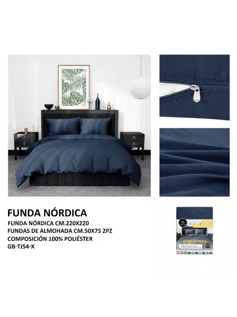 Este kit de funda nórdica monocromática, confeccionada en tela GB de un profundo color azul marino, está diseñada para ofrecer una alta durabilidad y resistencia. Con dimensiones cuadradas de 220x220 cm, es ideal para edredones grandes, aportando un toque de sofisticación, calma lujosa y elegancia atemporal a tu dormitorio. El tono intenso y envolvente crea una atmósfera serena y distinguida, perfecta para integrarse en decoraciones modernas, clásicas o costeras. La calidad del tejido garantiza suavidad, fácil mantenimiento y una larga vida útil, asegurando confort y un aspecto siempre majestuoso y acogedor.