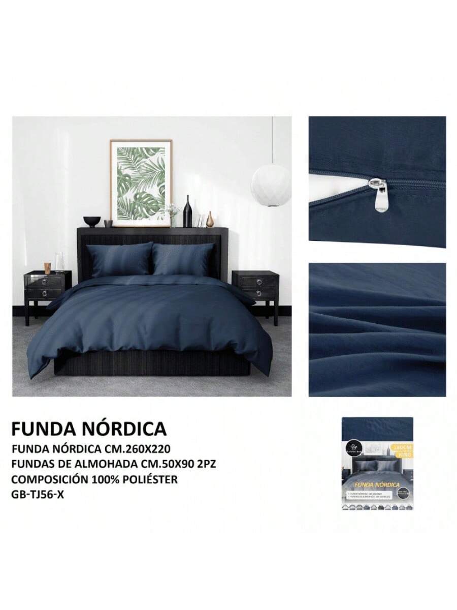 Este kit de funda nórdica monocromática, confeccionada en tela GB de un vibrante color azul fuerte, está diseñada para ofrecer una alta durabilidad y resistencia. Con dimensiones extragrandes de 260x220 cm, es ideal para edredones de gran tamaño, aportando un toque de energía, frescura y elegancia moderna a tu dormitorio. El tono intenso y luminoso crea una atmósfera vivaz y con carácter, perfecta para integrarse en decoraciones contemporáneas, costeras o con personalidad. La calidad del tejido garantiza suavidad, fácil mantenimiento y una larga vida útil, asegurando confort y un aspecto siempre impactante y sofisticado.