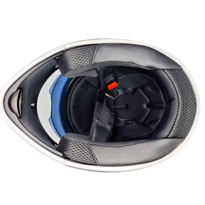Su sistema modular cuenta con un mecanismo de apertura frontal sencillo que puedes operar con una sola mano, ideal para realizar paradas rápidas, hablar o refrescarte sin quitarte el equipo. Equipado con un sistema de doble visor, incluye una pantalla exterior transparente anti-rayaduras para una visión clara y un visor solar interno retráctil que bloquea el deslumbramiento en días soleados. El interior posee un forro acolchado, transpirable, desmontable y lavable, garantizando higiene y comodidad constante.[4] Perfecto para uso urbano (scooter/delivery) y turismo, cumpliendo con los estándares de seguridad esenciales para tu tranquilidad en la carretera.
