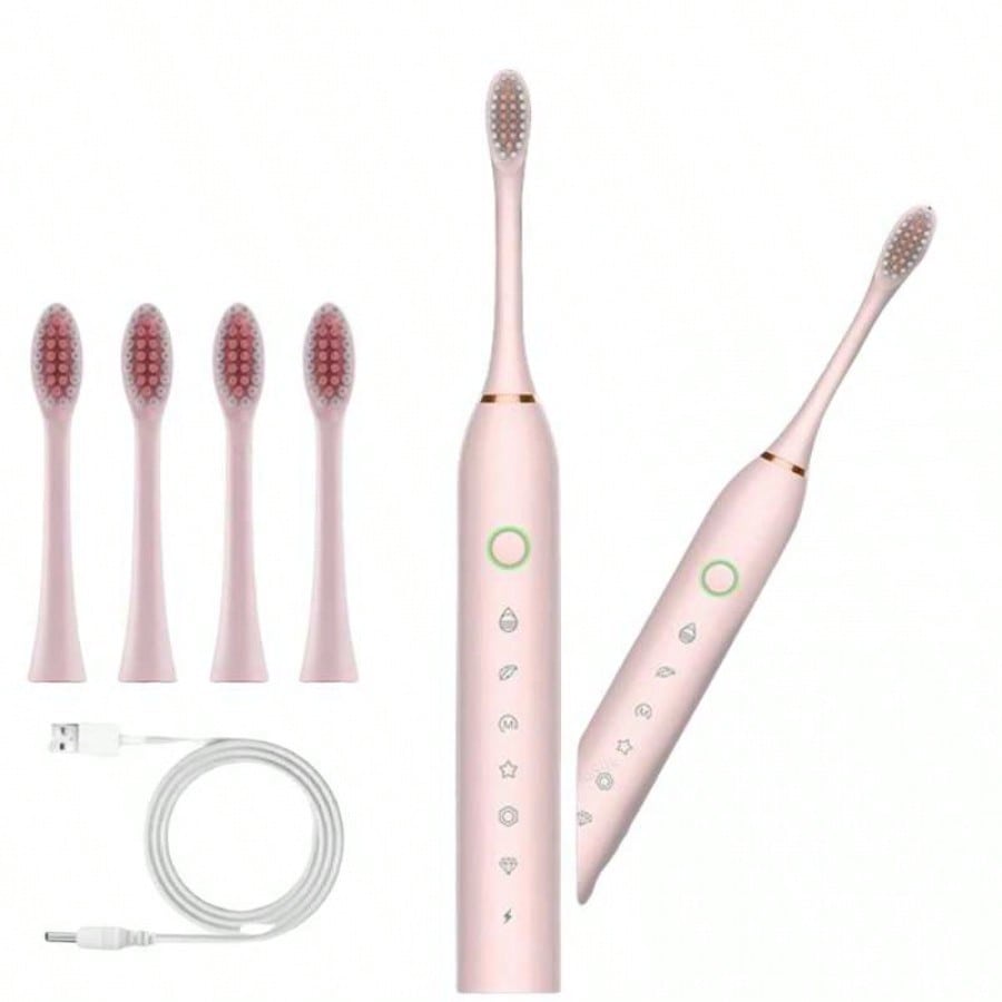 Este sofisticado cepillo de dientes eléctrico sónico X-2 en color rosa pastel ha sido diseñado para transformar tu rutina de higiene bucal en una experiencia de cuidado profesional y delicada. Equipado con un potente motor de alta frecuencia que alcanza hasta 45,000 vibraciones por minuto, garantiza una eliminación de placa excepcional y una limpieza profunda incluso en las zonas de difícil acceso, superando con creces la eficacia de un cepillado manual. Su sistema inteligente cuenta con seis modos de funcionamiento ajustables que permiten personalizar el tratamiento según tus necesidades específicas, desde una limpieza diaria intensiva y blanqueamiento hasta cuidados especiales para encías sensibles o masajes estimulantes. Para asegurar una técnica perfecta, integra un temporizador de dos minutos con recordatorios vibratorios cada treinta segundos, guiándote para cubrir de manera uniforme los cuatro cuadrantes de la boca. Gracias a su certificación de impermeabilidad IPX7, el dispositivo es completamente resistente al agua, permitiendo su uso seguro bajo la ducha y una limpieza sencilla directamente bajo el grifo. Este kit completo incluye cuatro cabezales de repuesto con cerdas de alta calidad y un cable de carga USB, ofreciendo una autonomía duradera y un diseño ergonómico ligero, ideal tanto para el uso cotidiano en casa como para acompañarte en todos tus viajes con el máximo estilo.