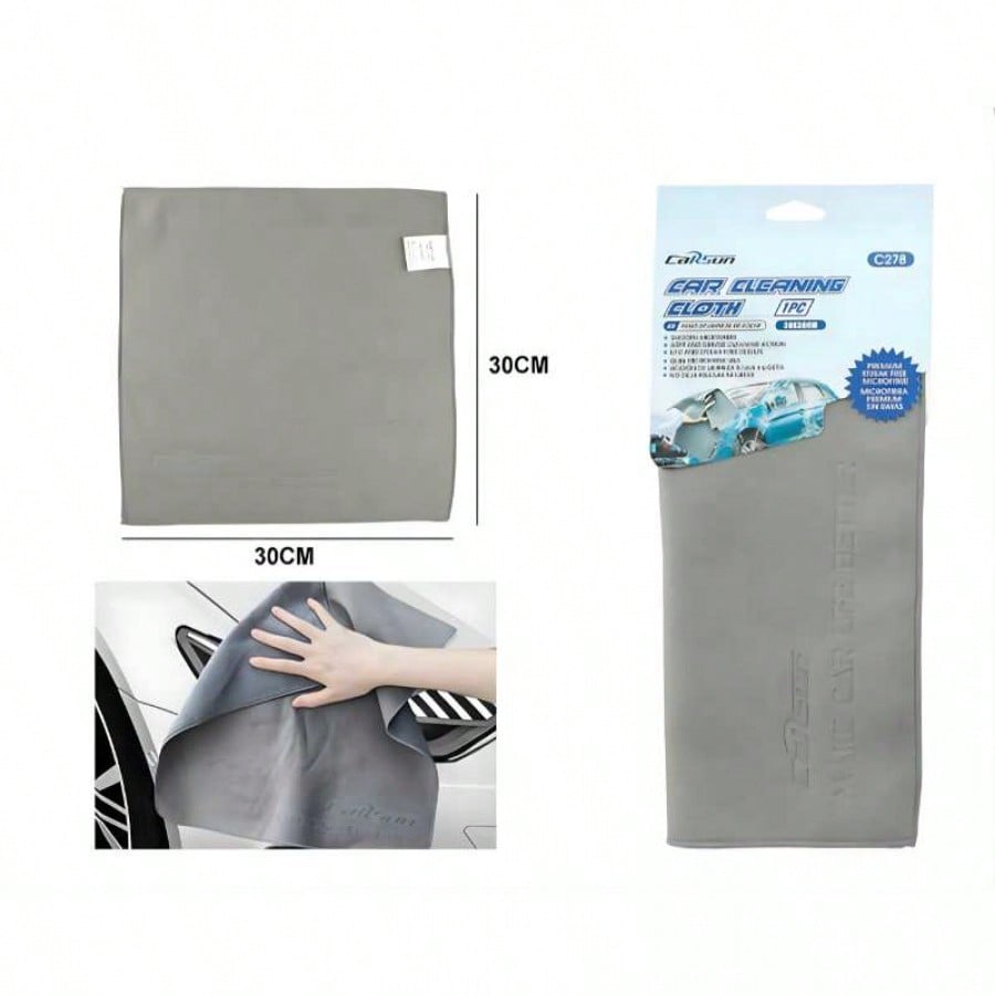 Obten un secado perfecto y sin manchas con esta toalla de limpieza tipo gamuza sintetica de doble cara. Diseñada especificamente para el cuidado automotriz, su tejido suave y liso absorbe el agua rapidamente sin dejar pelusa, marcas ni rayones en la pintura o los cristales. Con un tamaño practico de 30x30 cm, es facil de manejar y perfecta para limpiar ventanas, espejos, carroceria y tableros. Su durabilidad y resistencia al desgaste la convierten en una herramienta esencial para los amantes de los autos que buscan un acabado profesional y brillante. Ademas, es versatil para su uso en el hogar, ideal para superficies delicadas que requieren un trato suave.