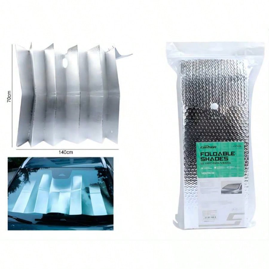 Protege el interior de tu vehiculo del calor abrasador y los daños solares con este parasol reflectante de alta calidad. Con unas medidas universales de 140 x 70 cm, se adapta a la mayoria de los parabrisas de autos estandar y camionetas pequeñas. Su construccion combina una superficie de aluminio plateado que rechaza los rayos UV con un nucleo de burbujas de aire que actua como una barrera aislante termica efectiva. Esto ayuda a mantener la cabina fresca, evitando que el volante y los asientos quemen al tacto, ademas de prevenir grietas y decoloracion prematura en el tablero. Es ligero, facil de colocar y cuenta con un diseño plegable tipo acordeon que permite guardarlo rapidamente sin ocupar espacio cuando no esta en uso.