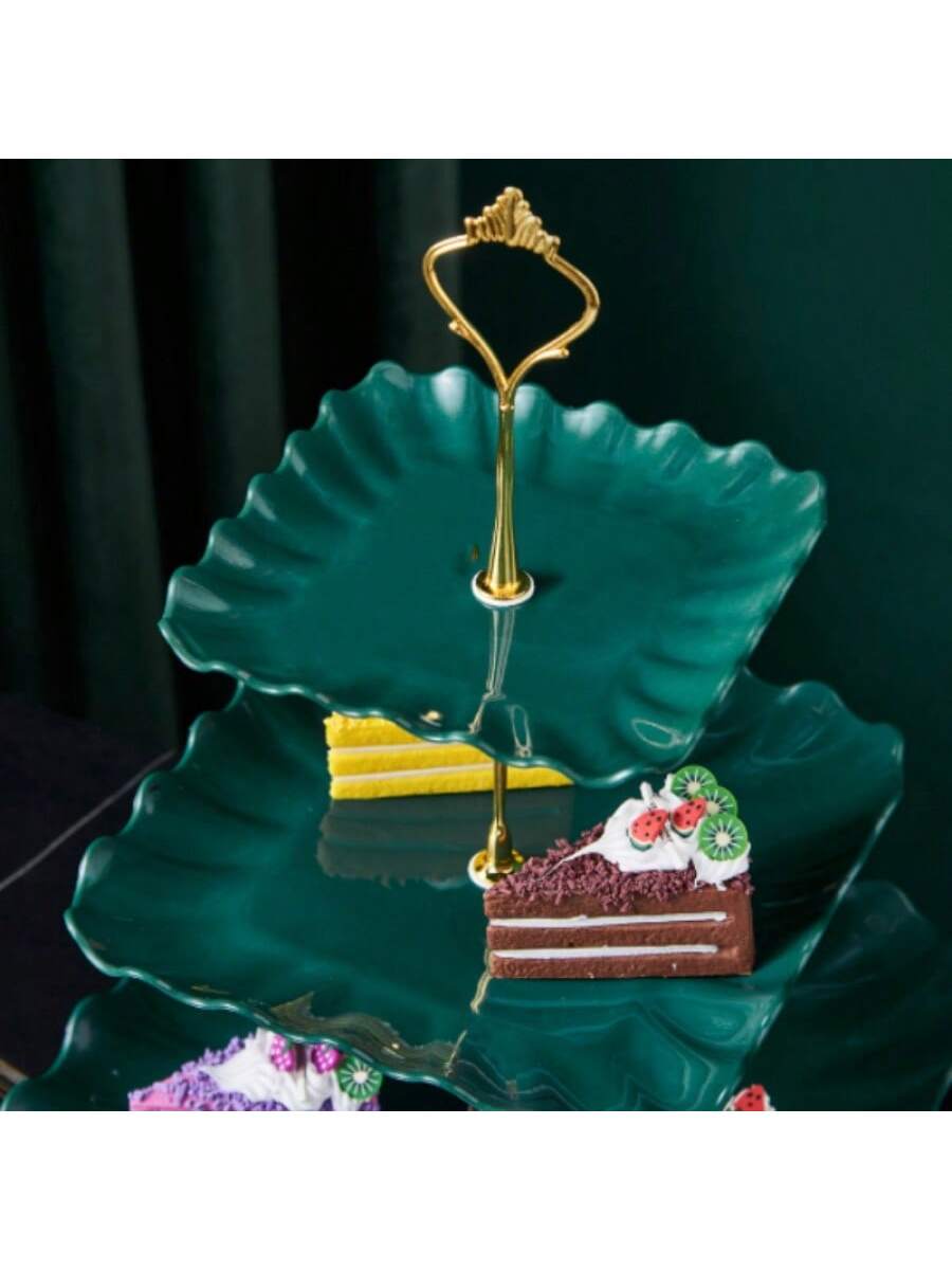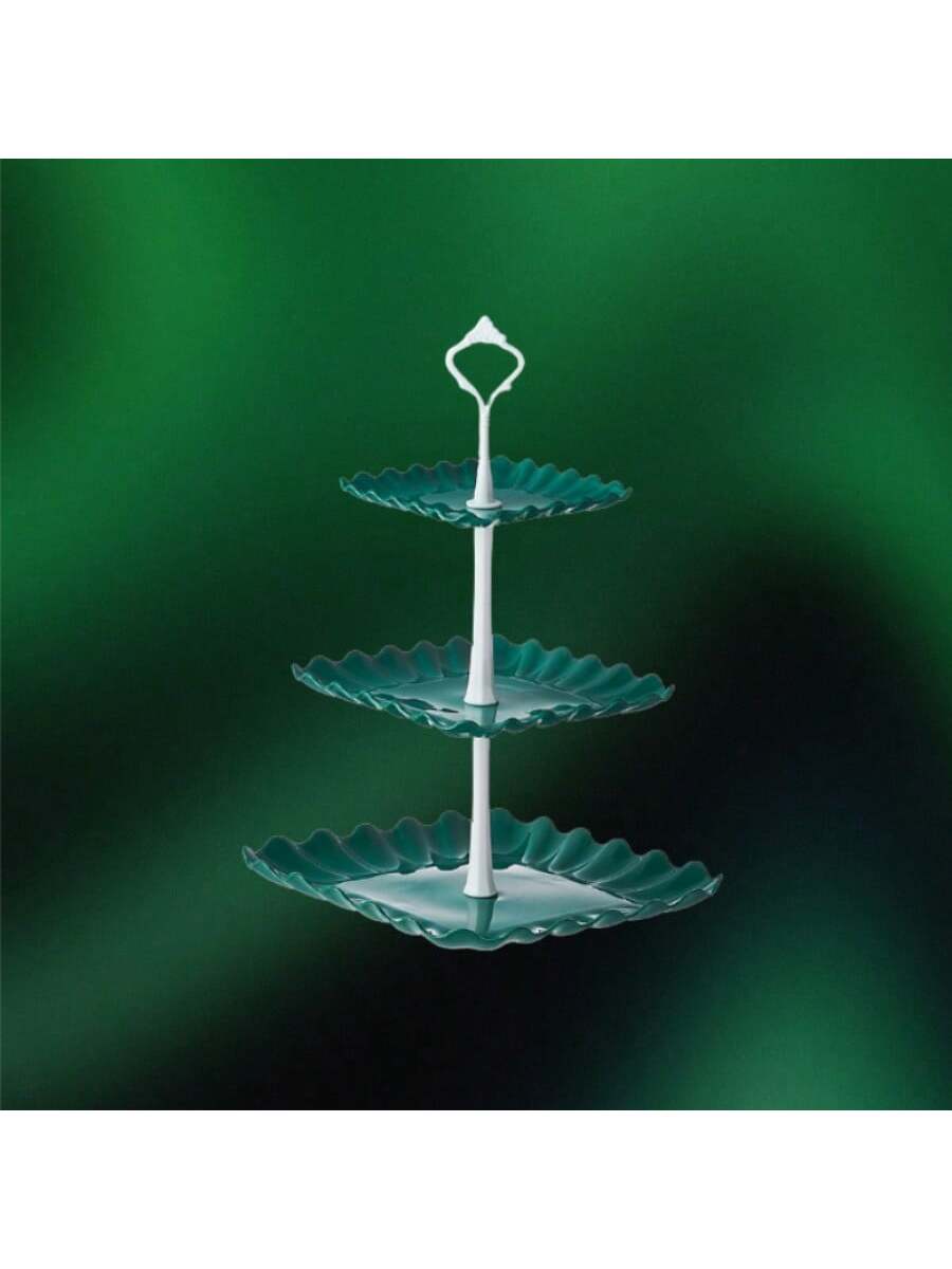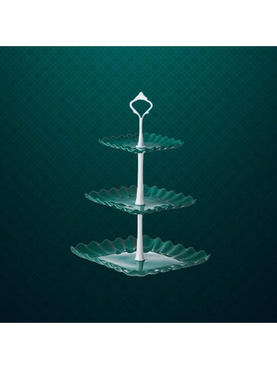 Elegante plato de fruta de tres niveles en sofisticada combinación blanco y verde oscuro. Diseño moderno y funcional que permite presentar diferentes tipos de frutas de forma organizada y atractiva. Cada nivel ofrece amplio espacio para exhibir generosas porciones. Fabricado en materiales resistentes y fáciles de limpiar. Perfecto para desayunos especiales, brunchs, reuniones familiares o como centro de mesa decorativo. Añade un toque de sofisticación a tu presentación de alimentos mientras mantienes todo ordenado y accesible para tus invitados.