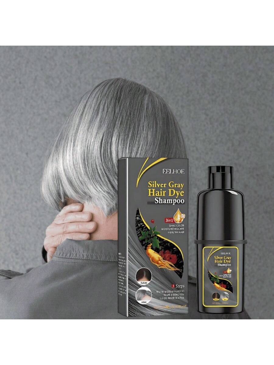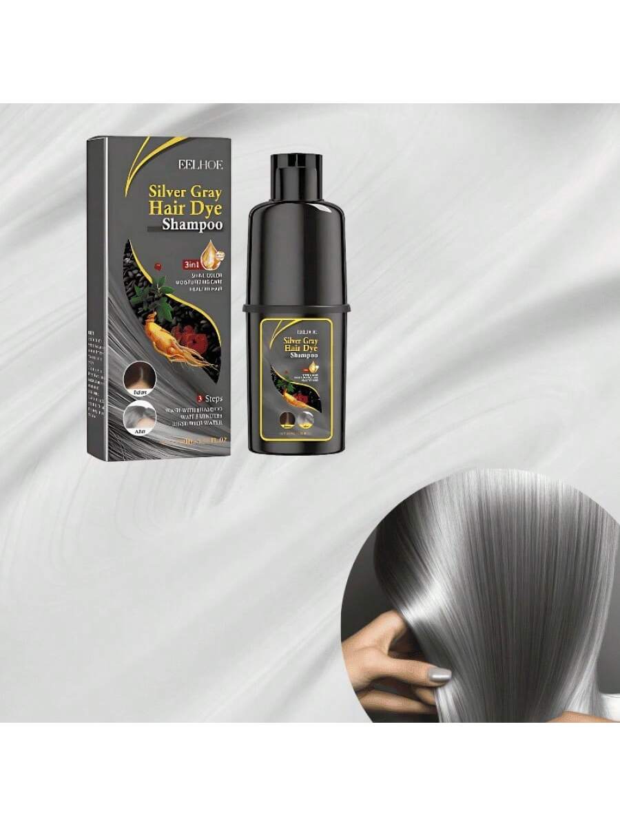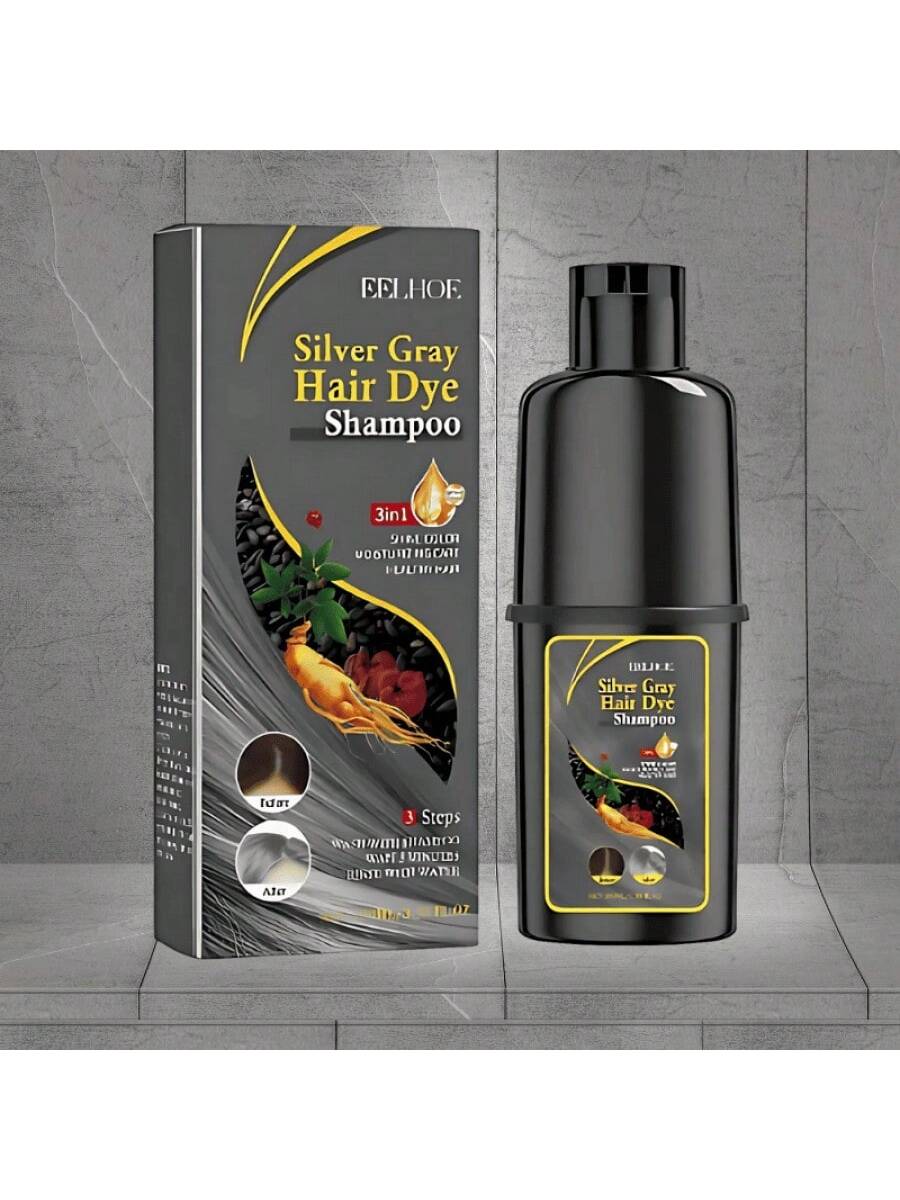 Champú que tiñe el cabello de negro con matices gris plateado. Mantiene el color vibrante mientras limpia el cabello suavemente, perfecto para cubrir canas.